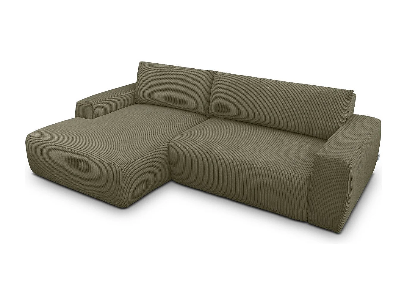 Canapé d'angle gauche convertible 3 places en velours côtelé vert kaki - Sonny