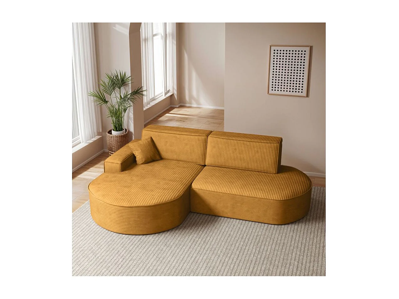Canapé d'angle gauche convertible 4 places MARLO en velours cotelé - Jaune
