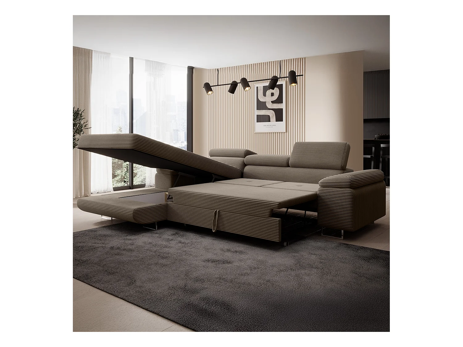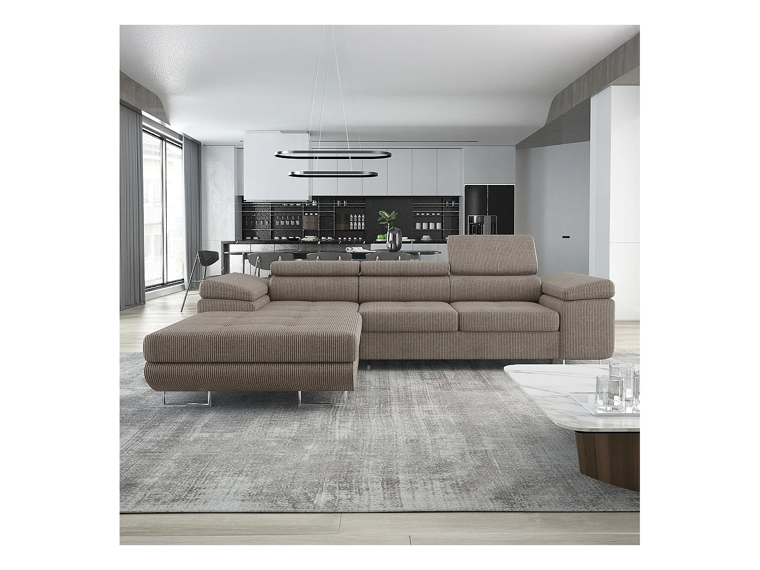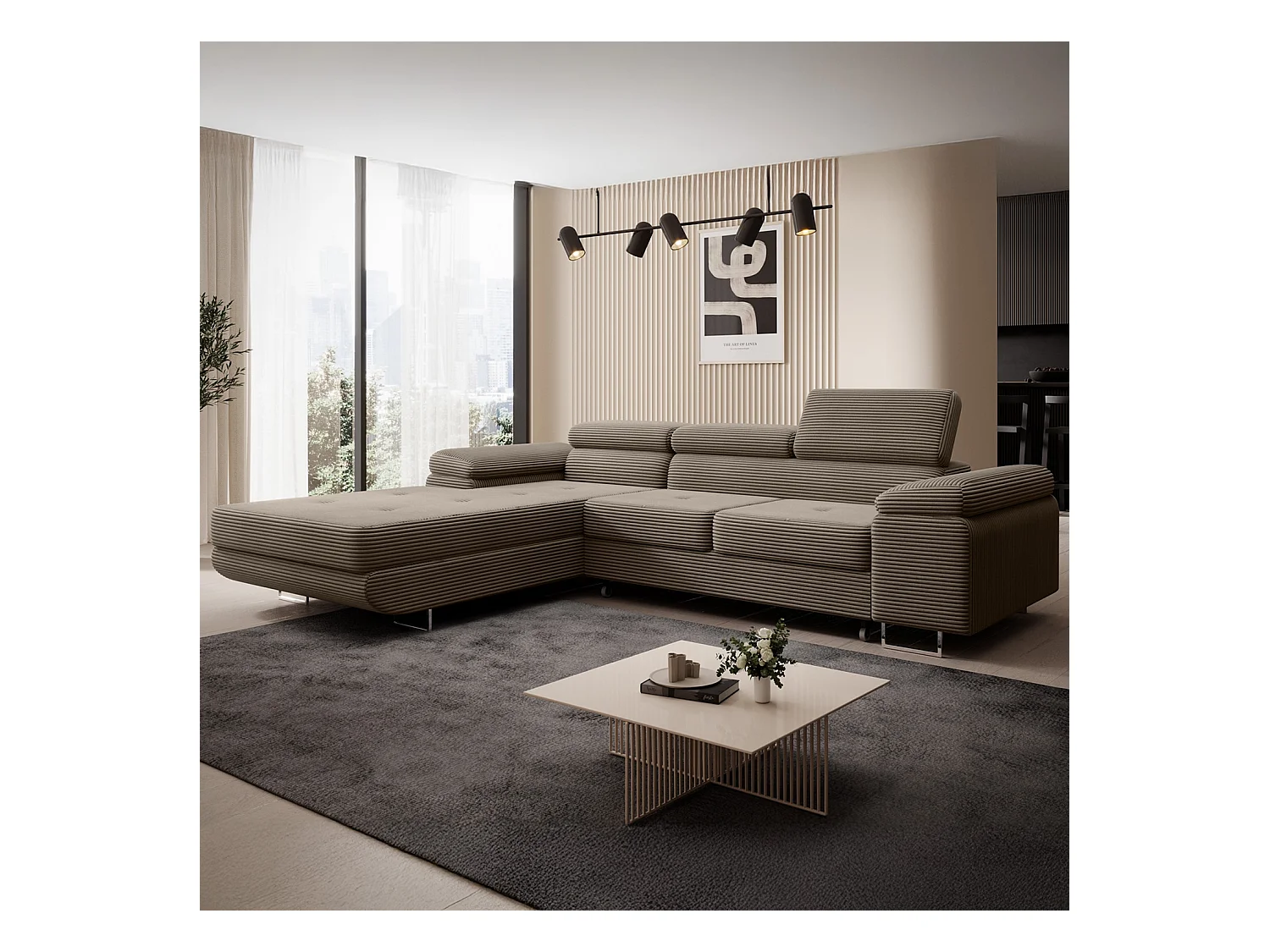 Canapé d'angle gauche convertible Alphonso velours côtelé Taupe