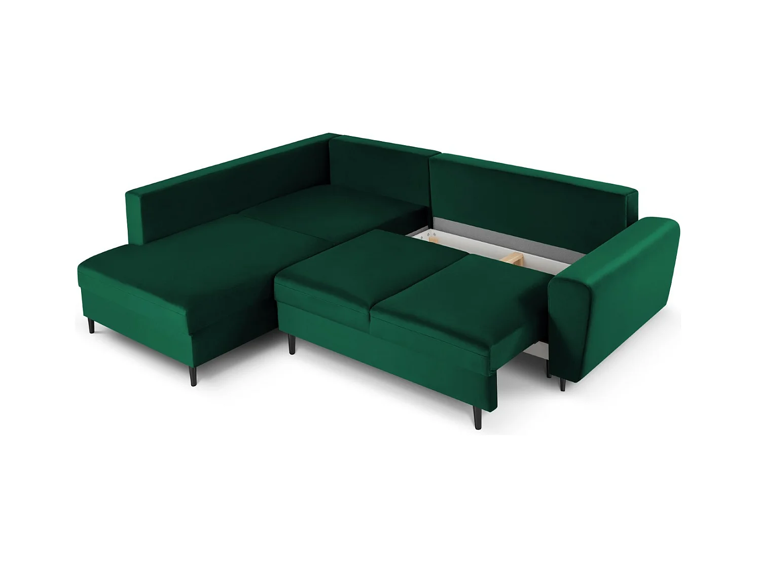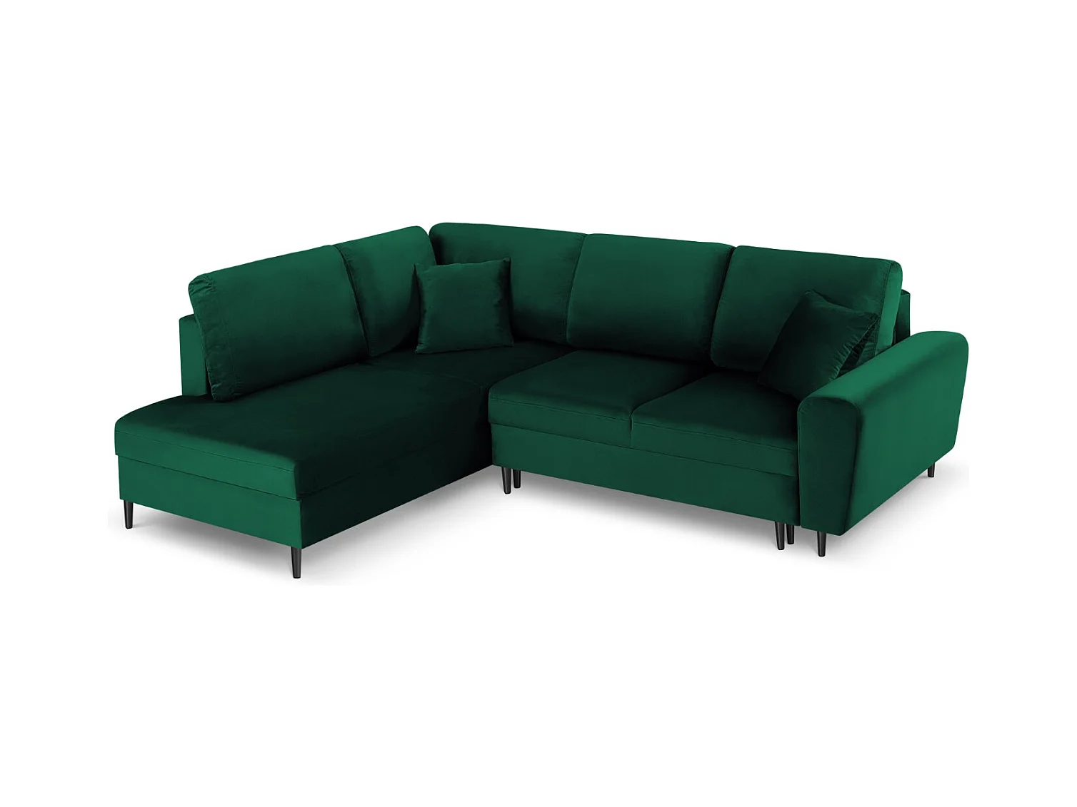 Cosmopolitan Design - Canapé d'angle gauche convertible avec coffre de rangement "Kyoto" 5 places en velours vert bouteille - 243x194x88cm
