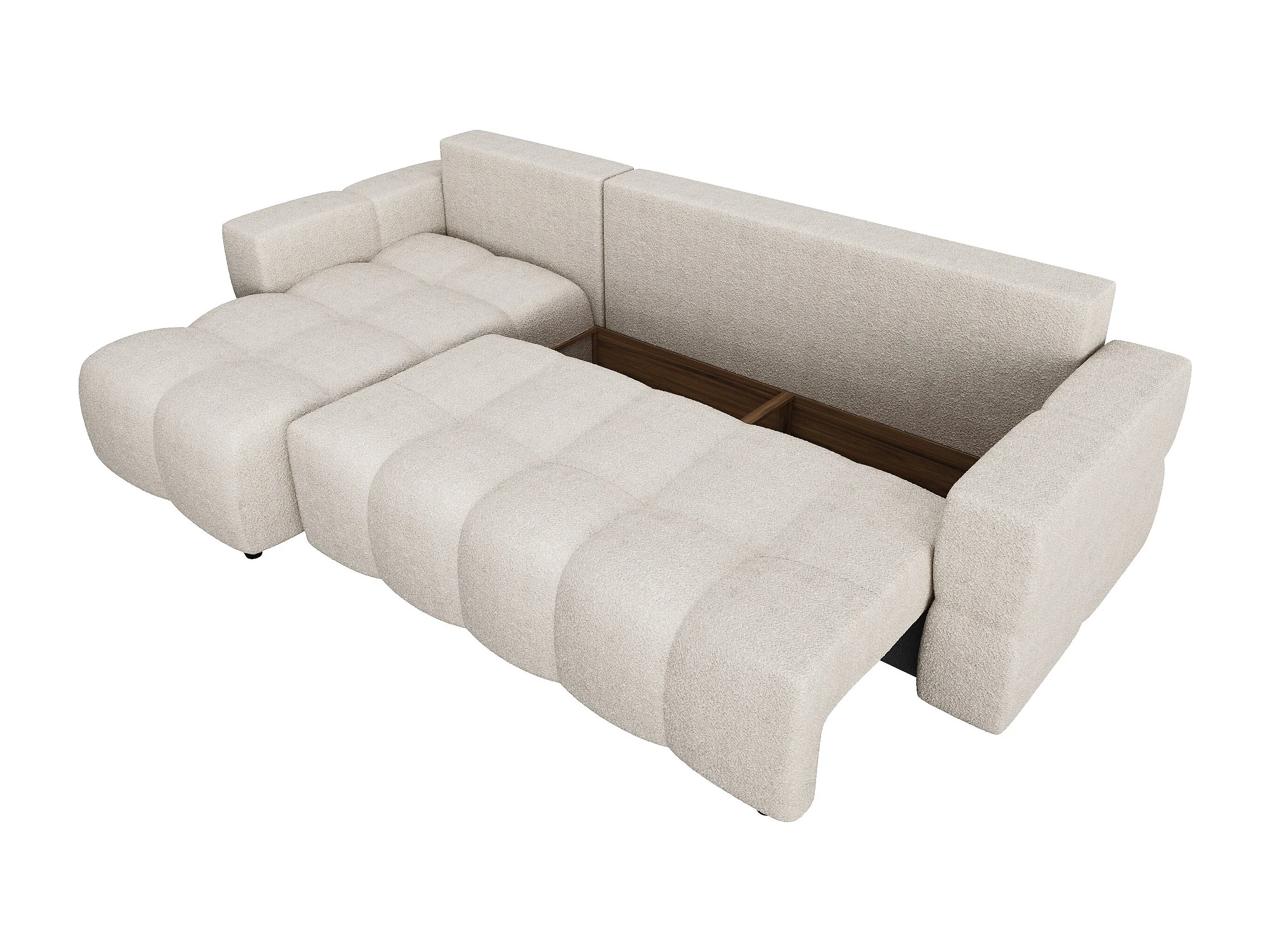 Canapé d'angle gauche convertible coffre 5 places bouclette beige GABRIEL