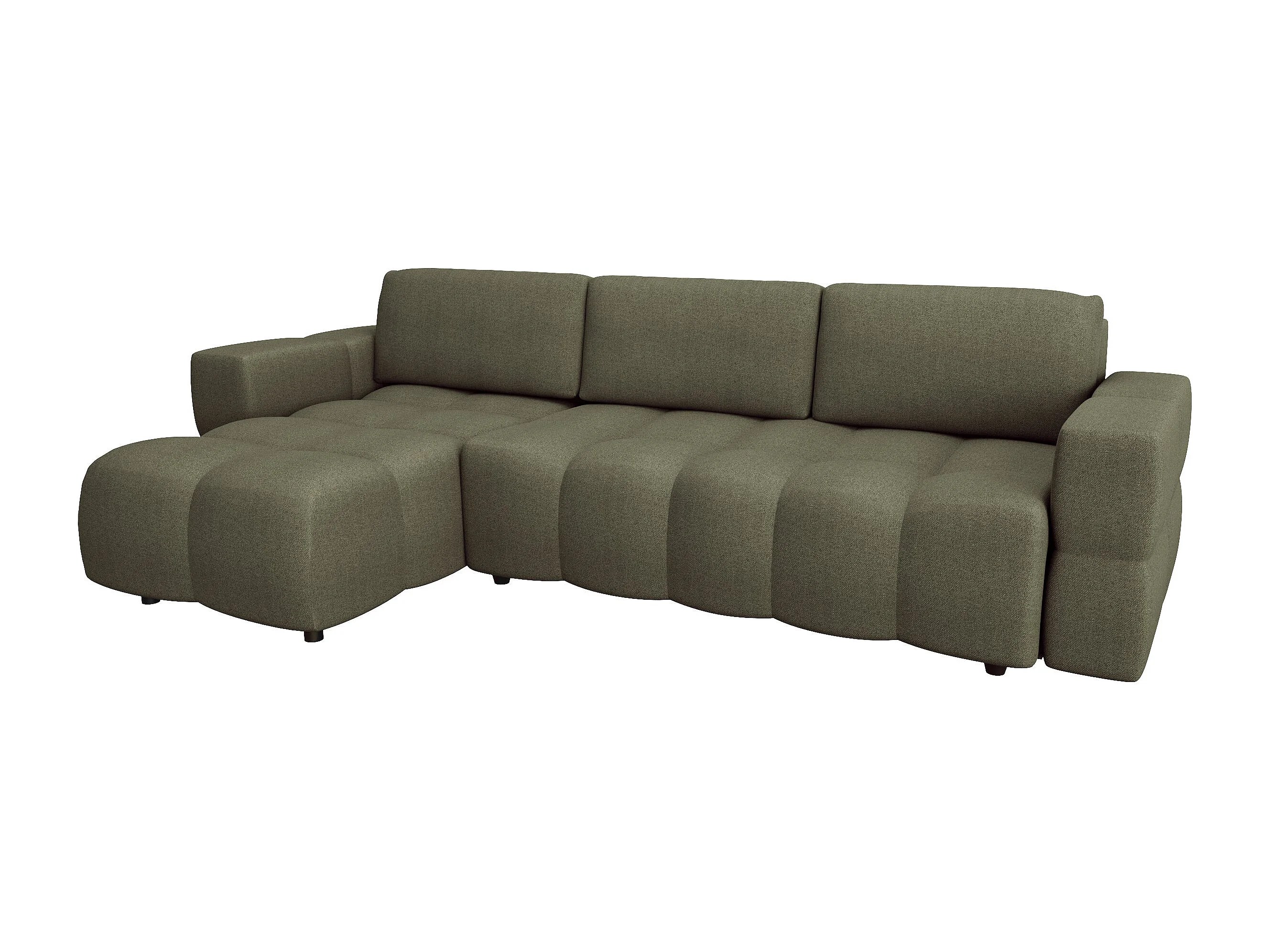 Canapé d'angle gauche convertible coffre 5 places tissu tramé vert GABRIEL