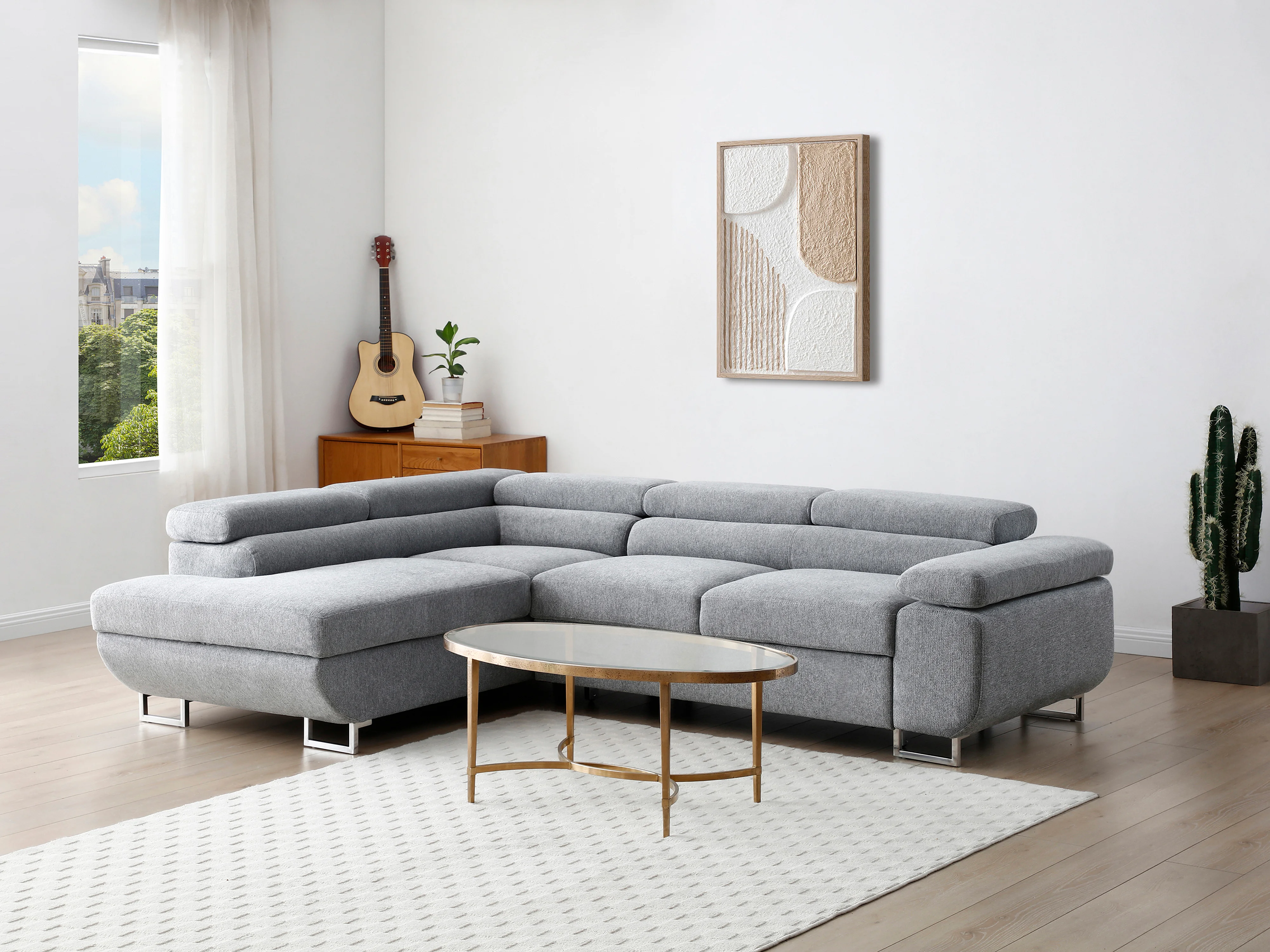 Canapé d'angle gauche convertible en tissu texturé gris NURAZIO