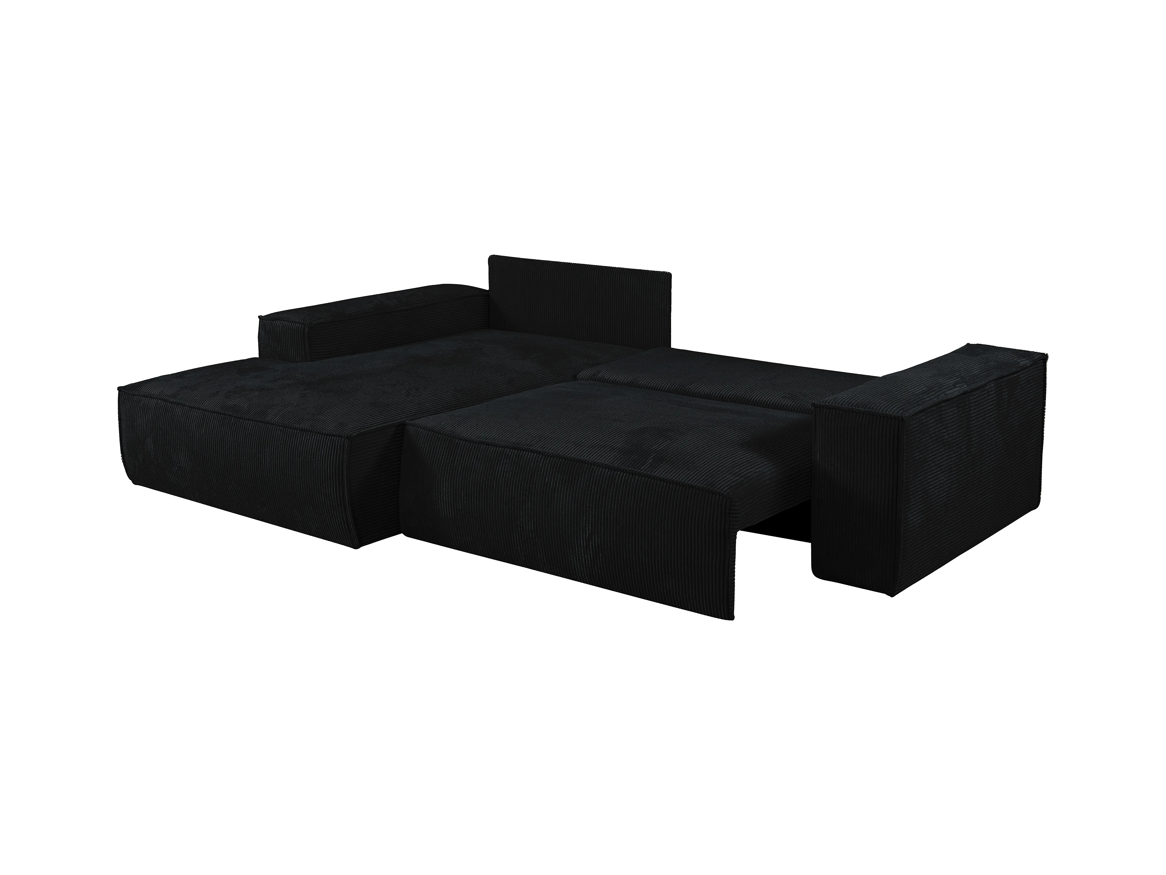 Canapé d'angle gauche convertible en velours côtelé noir AMELIA