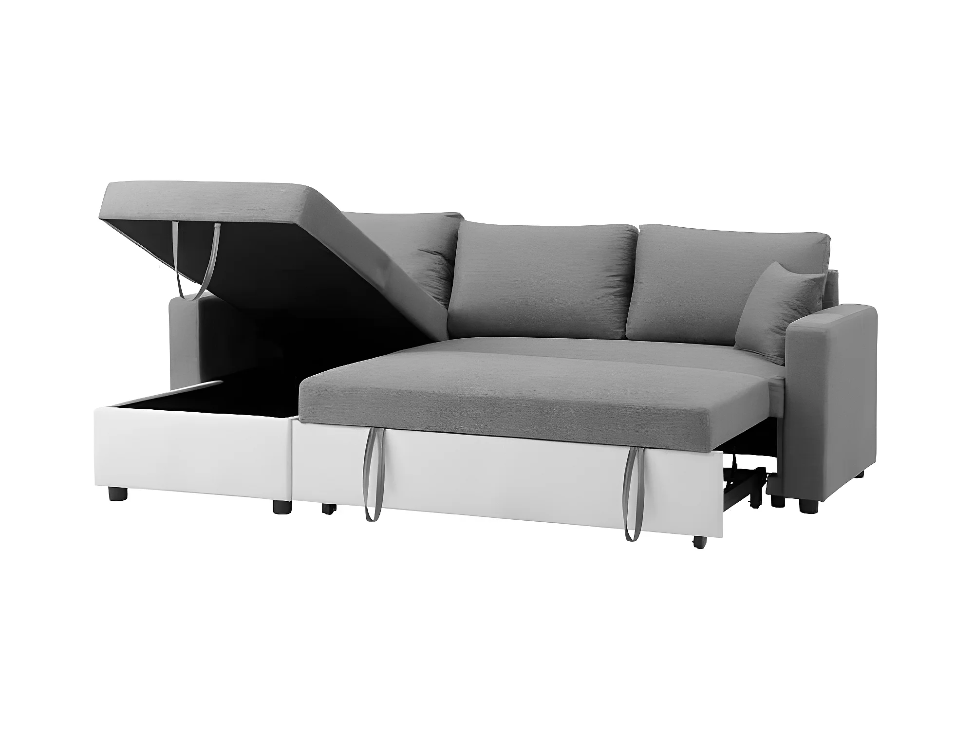 Canapé d'angle gauche convertible grand couchage + coffre - Tissu Blanc et gris - L 228 x P 148 x H 86 cm - OWENS