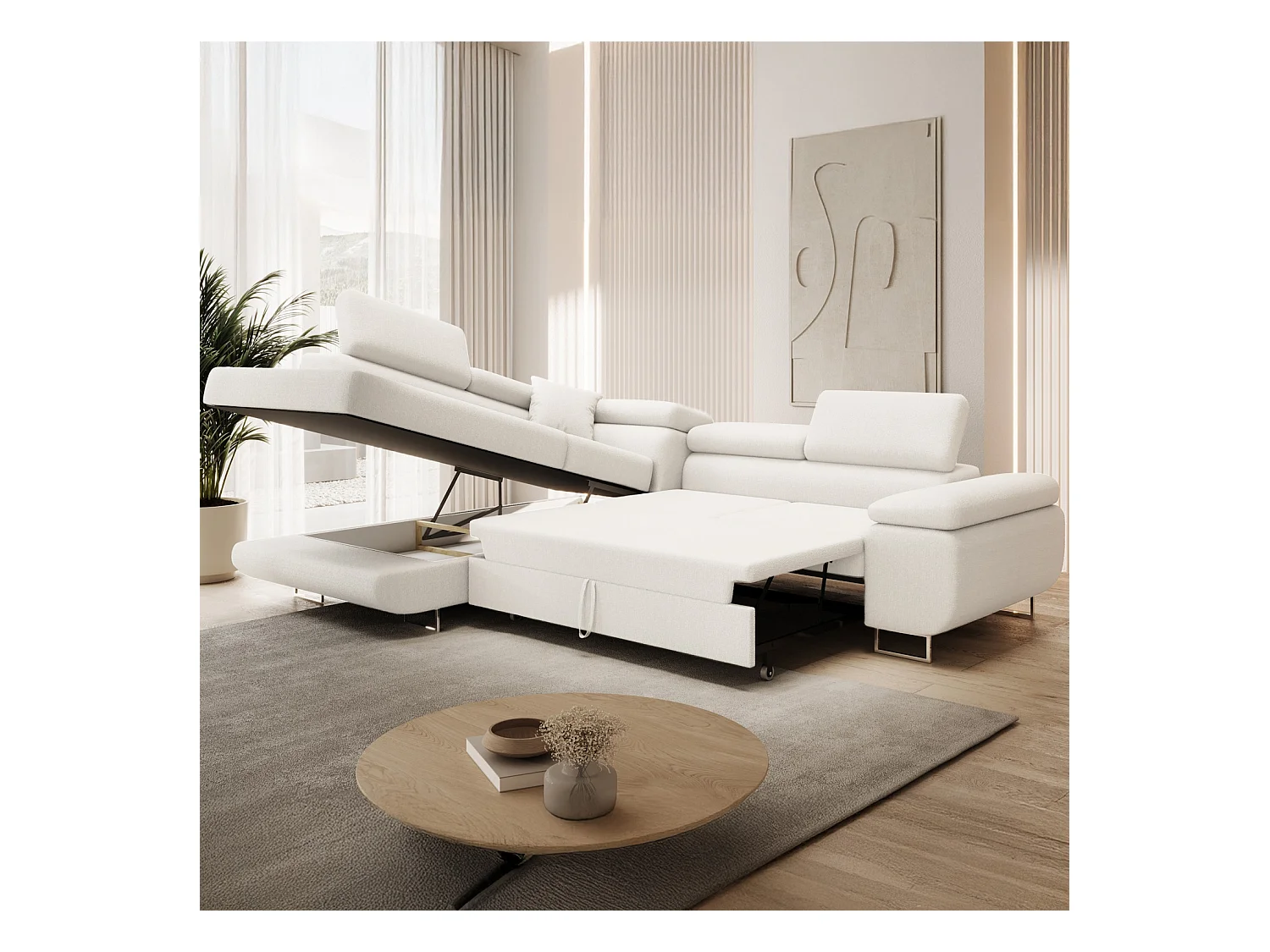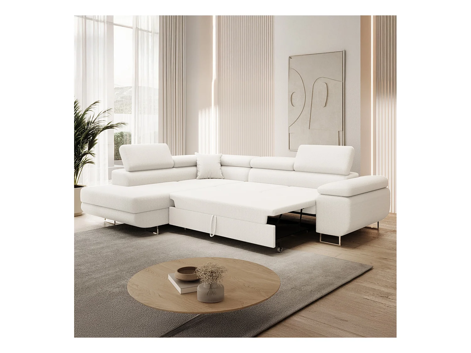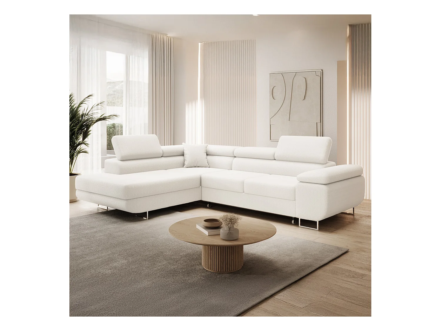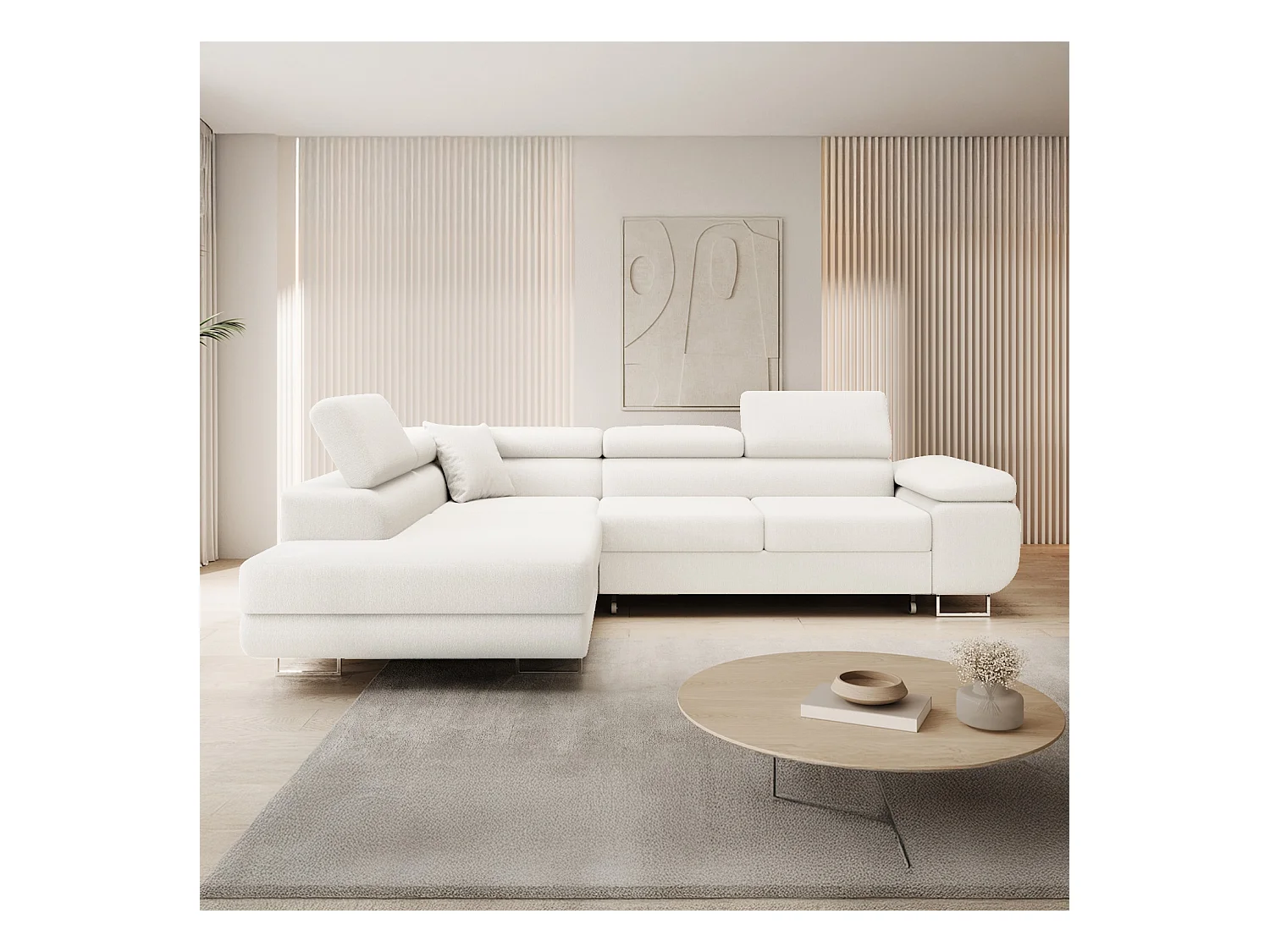 Canapé d'angle gauche convertible Marius bouclette Blanc