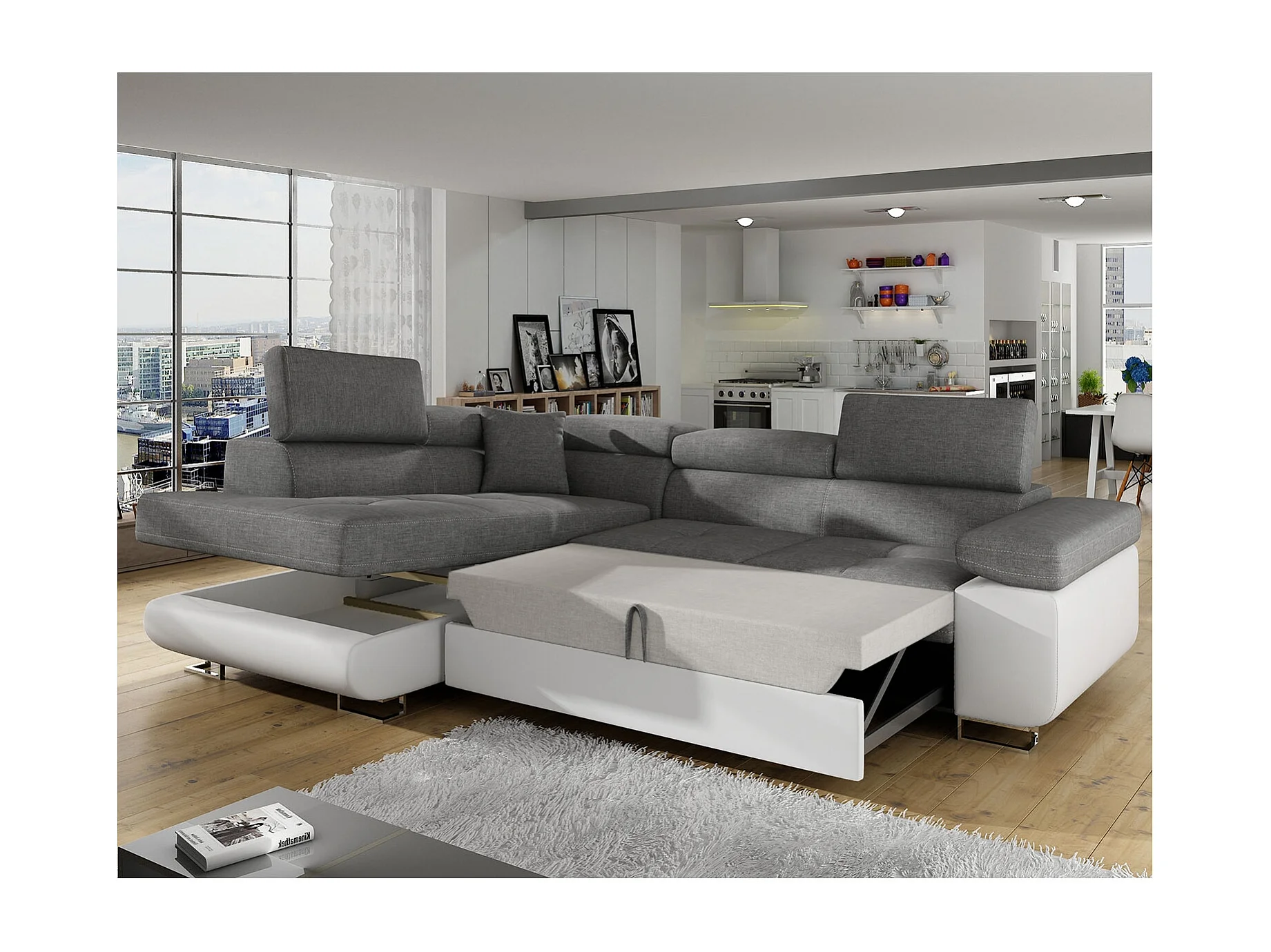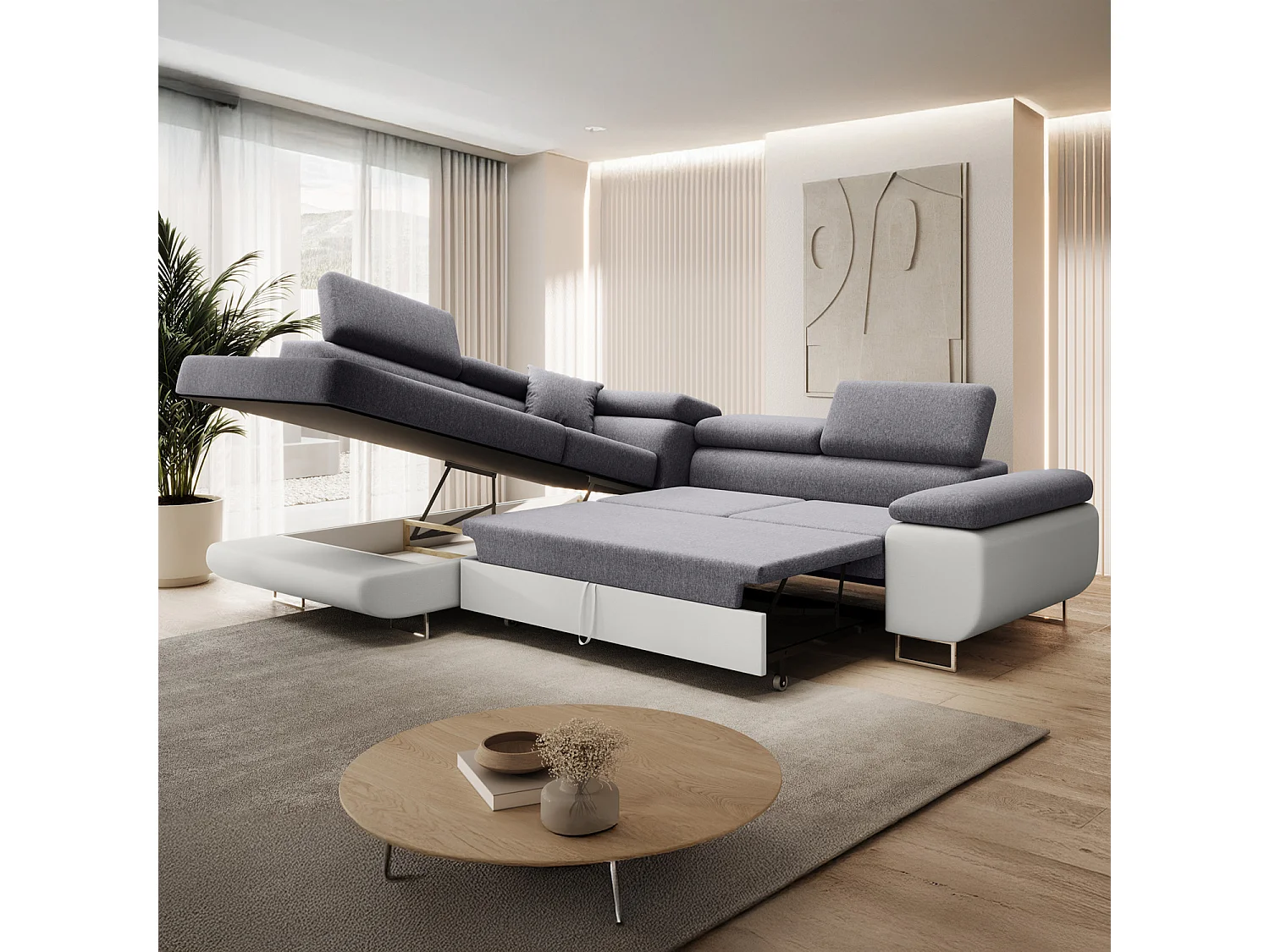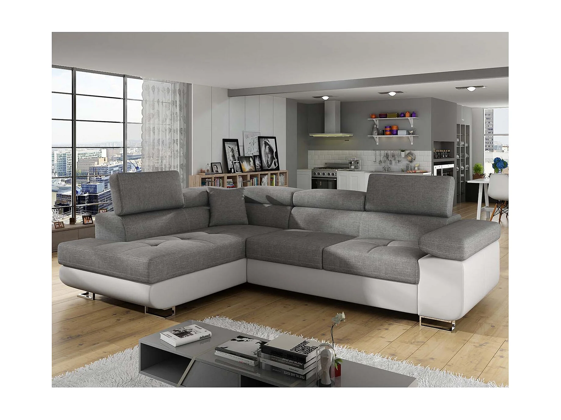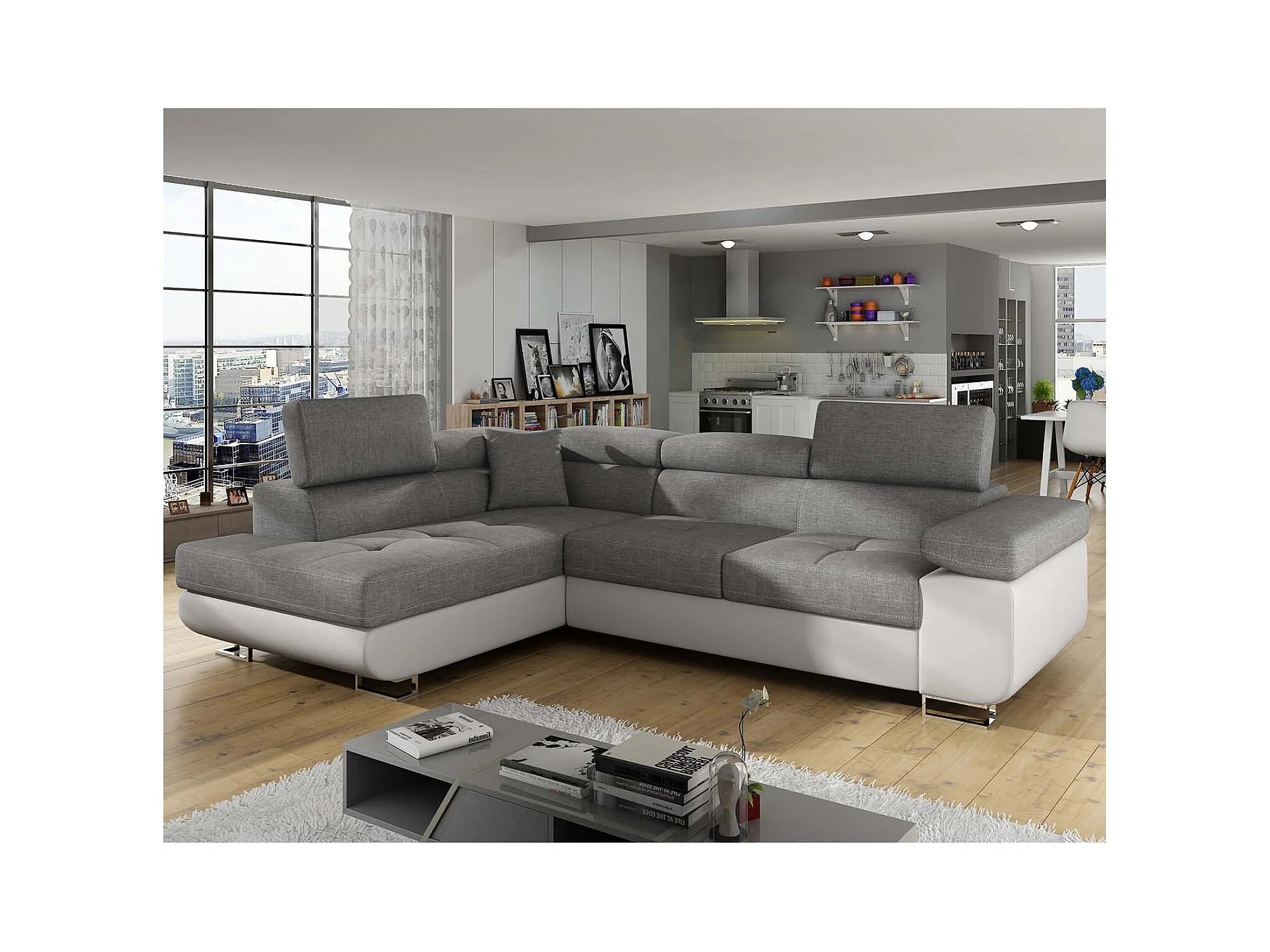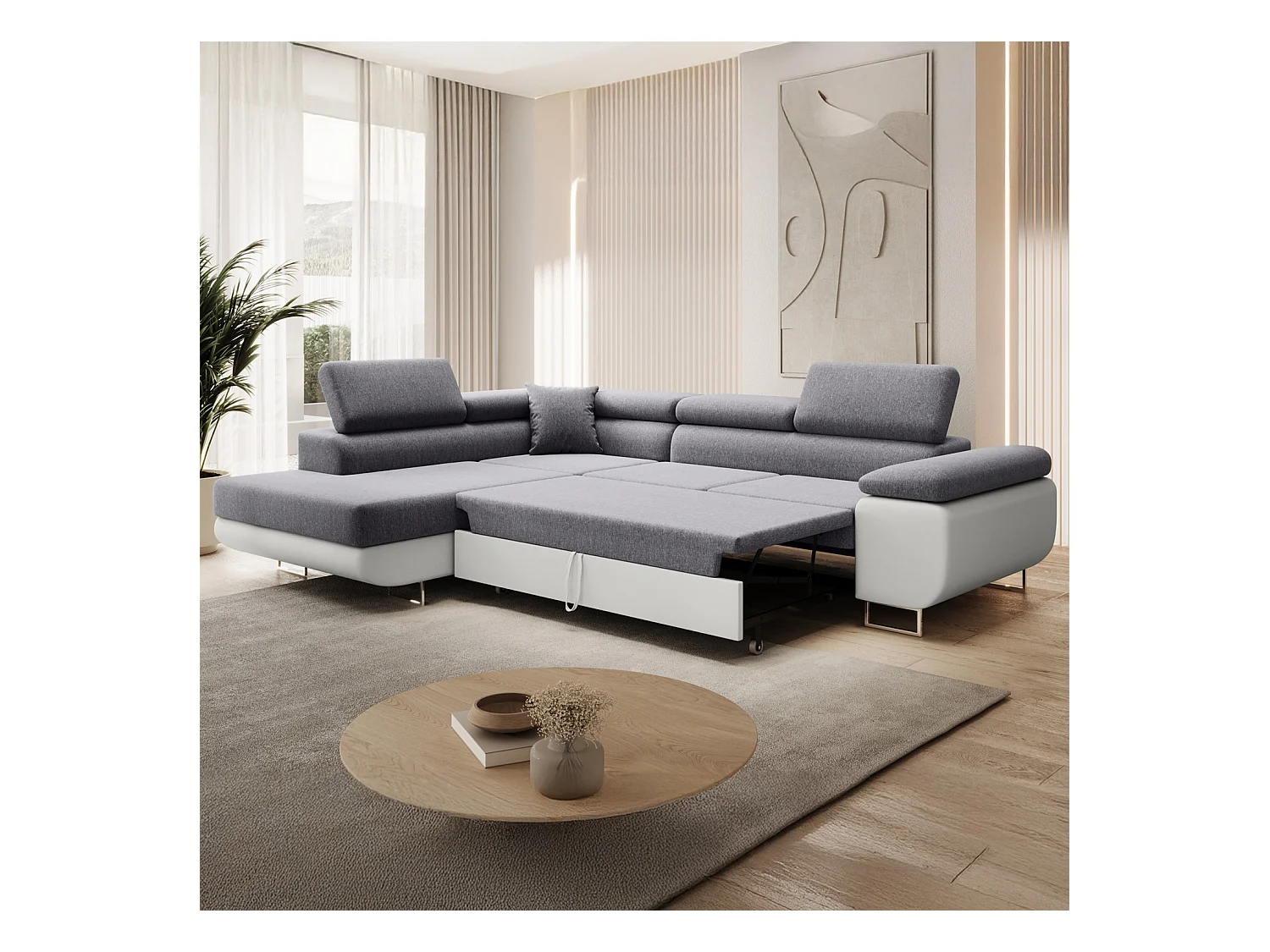 Canapé d'angle gauche convertible Marius Gris et Blanc