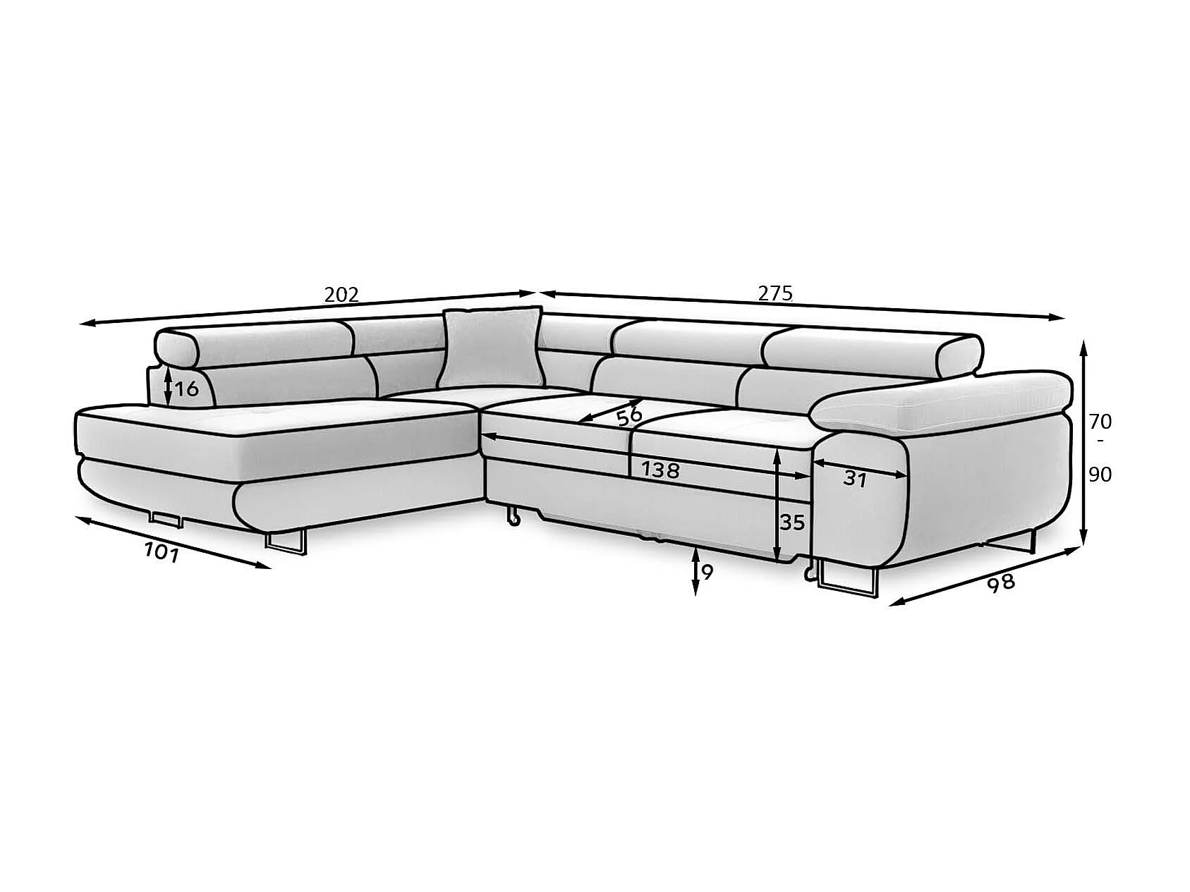 Canapé d'angle gauche convertible Marius tissu Gris