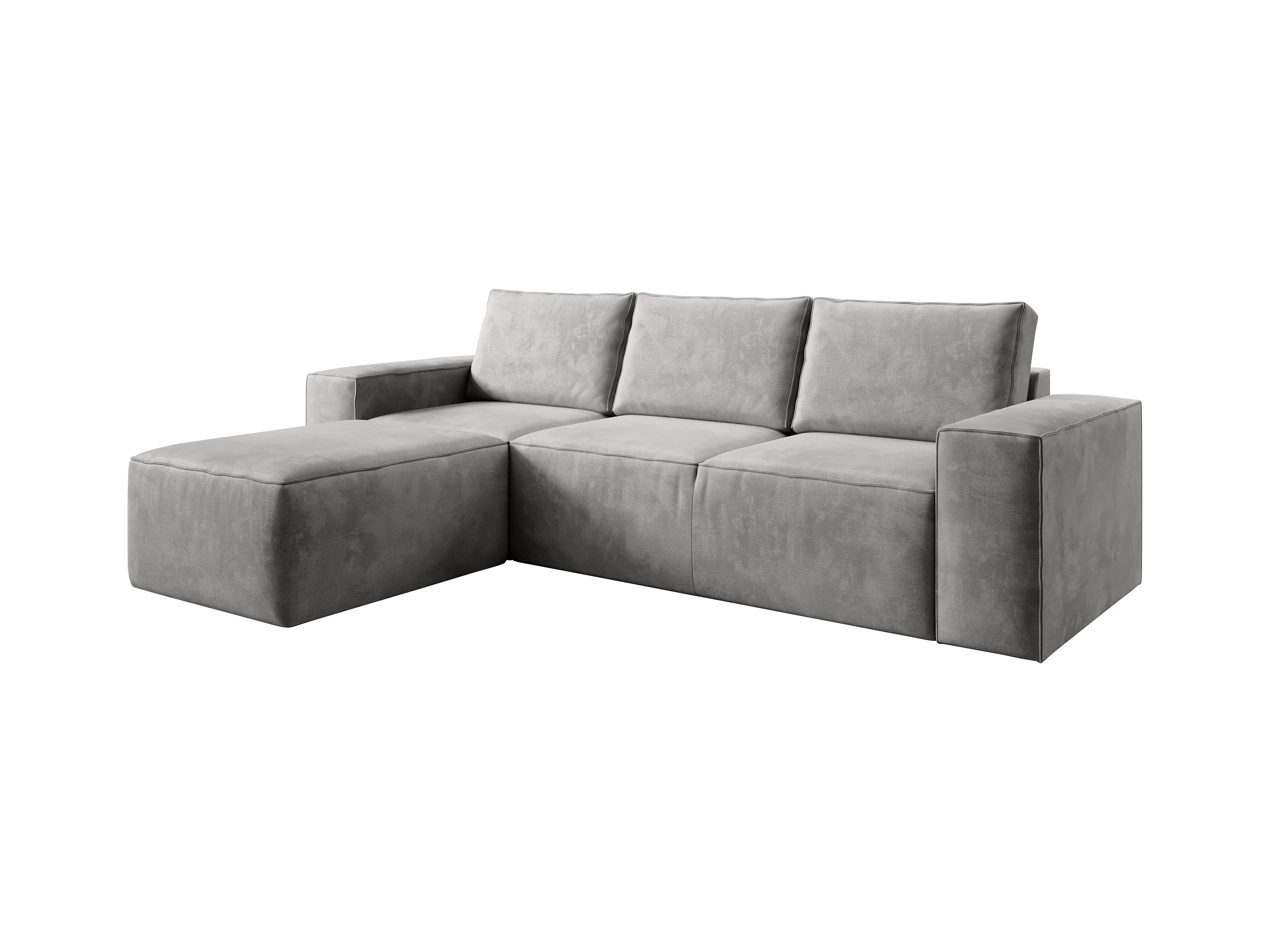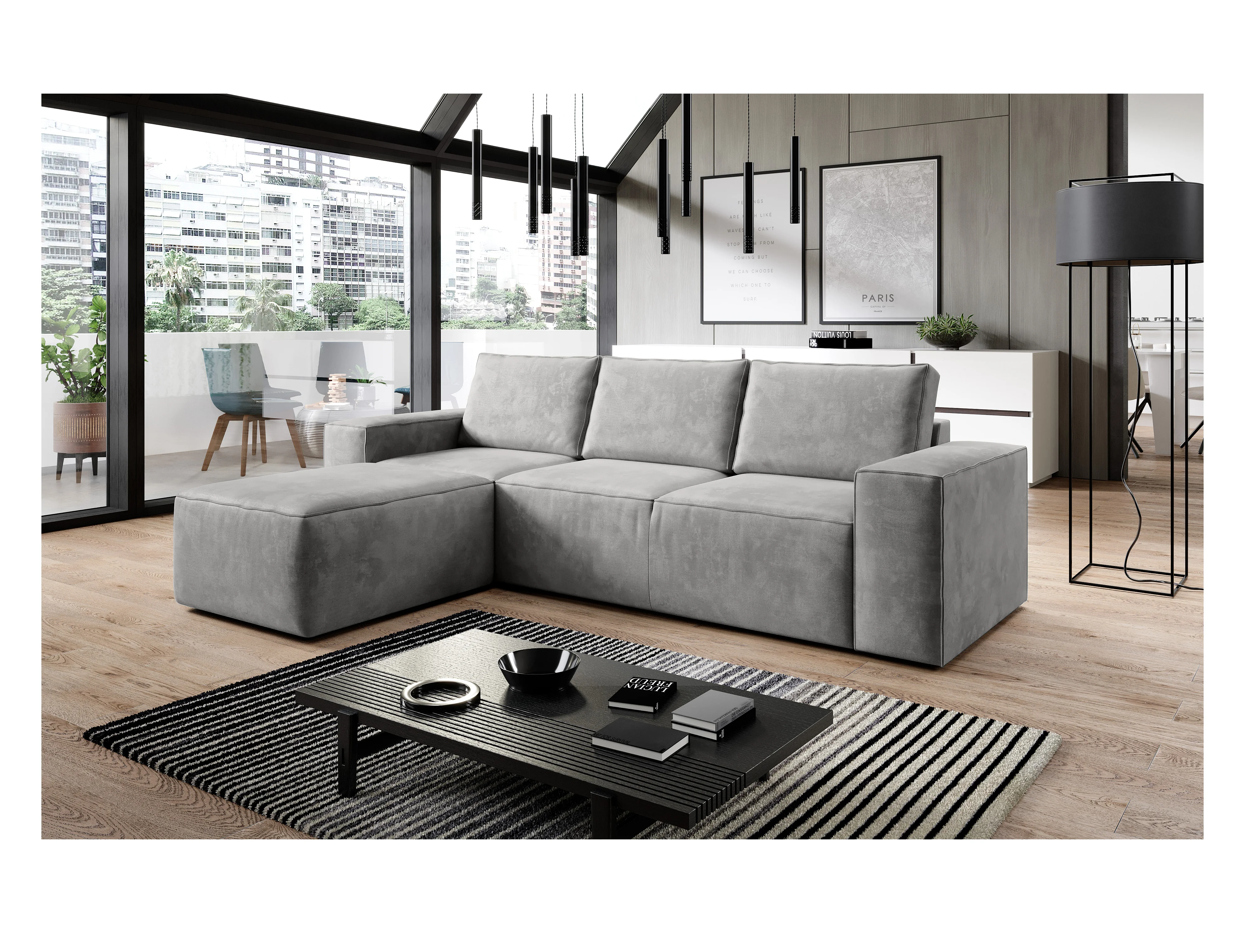 Canapé d'angle gauche convertible moderne tissu doux gris clair Willace 302cm