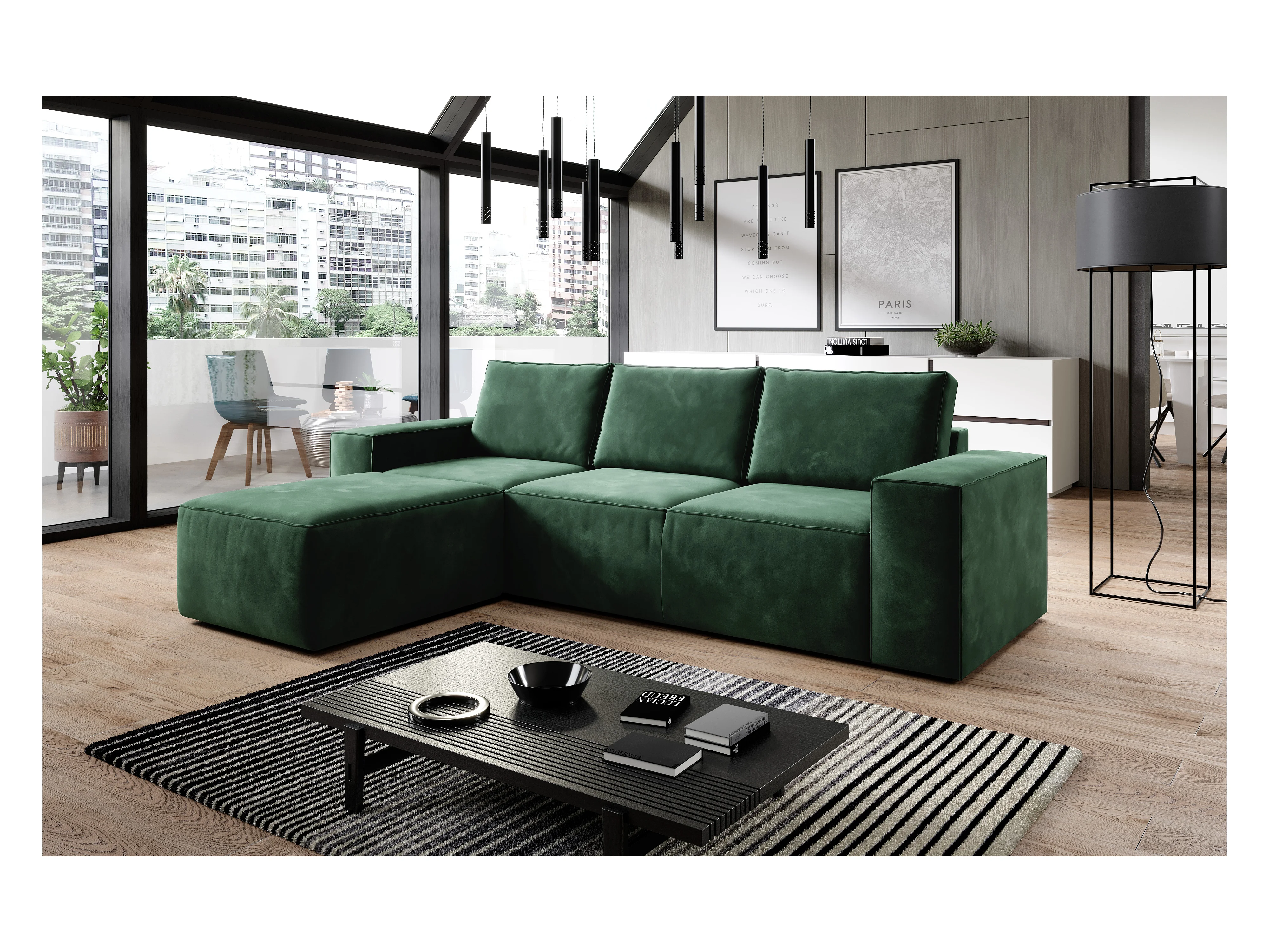 Canapé d'angle gauche convertible moderne velours vert anglais Willace 302cm