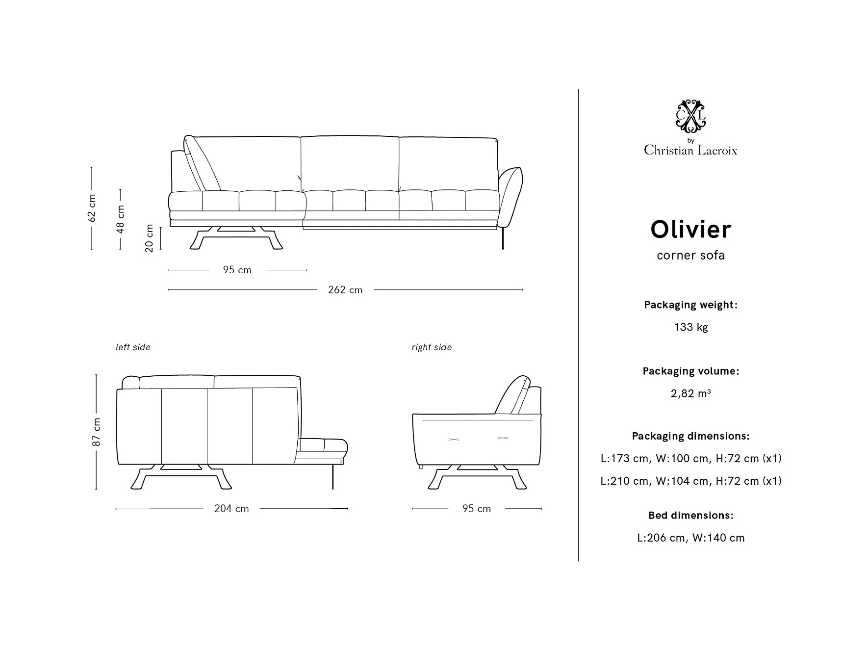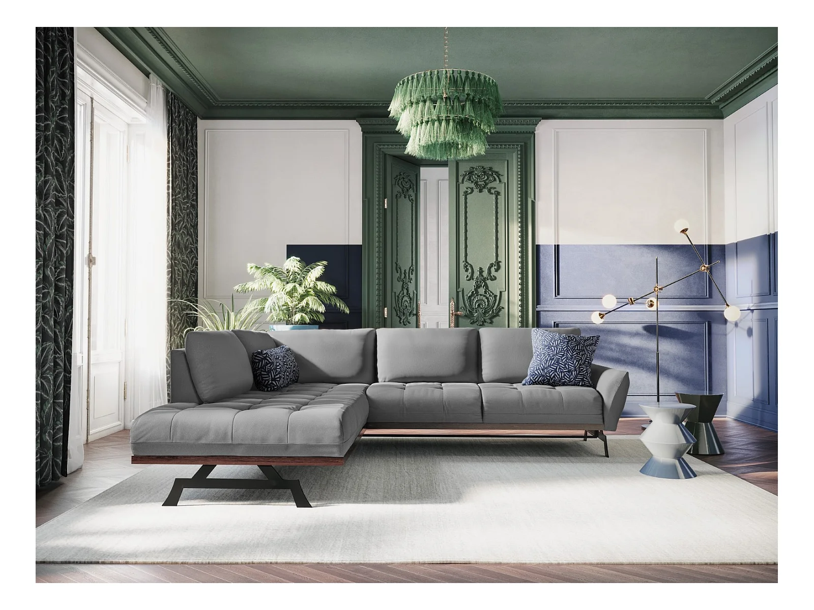 CXL by Christian Lacroix - Canapé d'angle gauche convertible "Olivier" 5 places en tissu structurel gris - 262x204x87cm