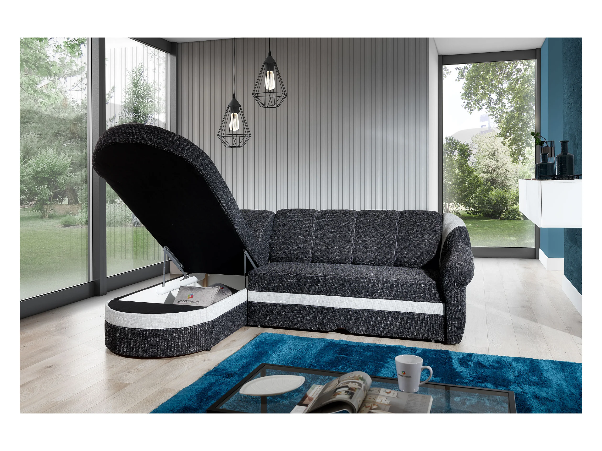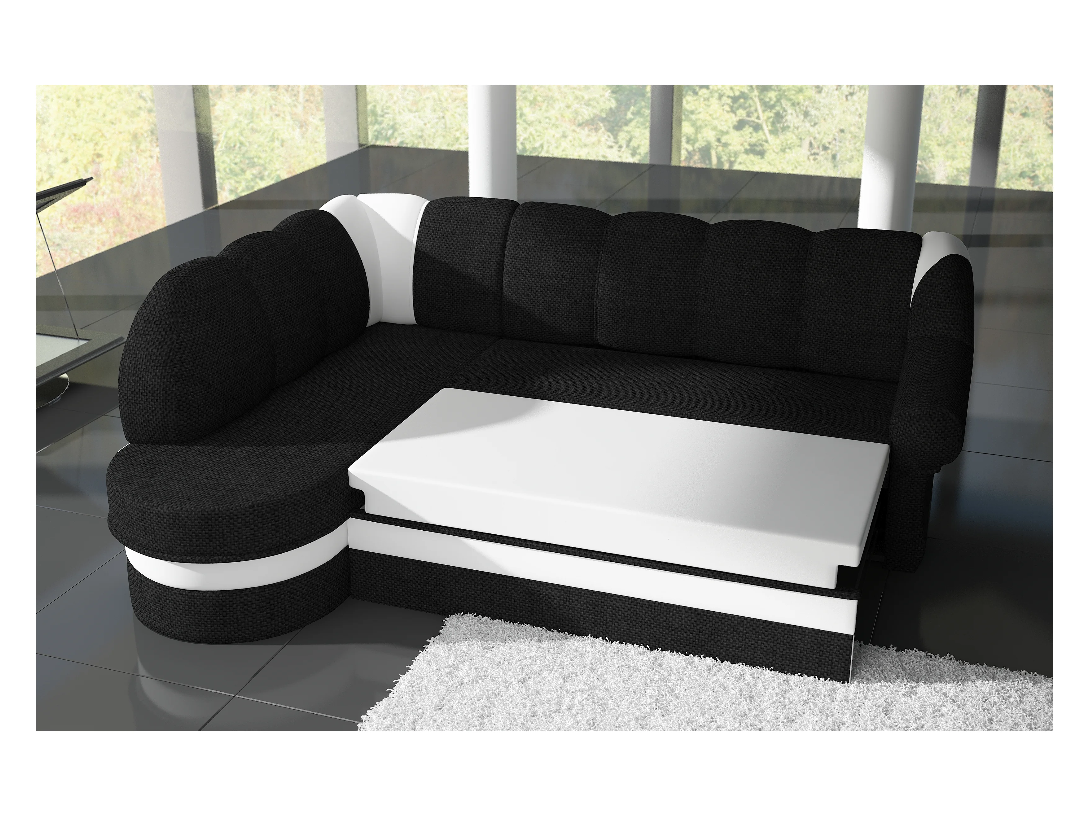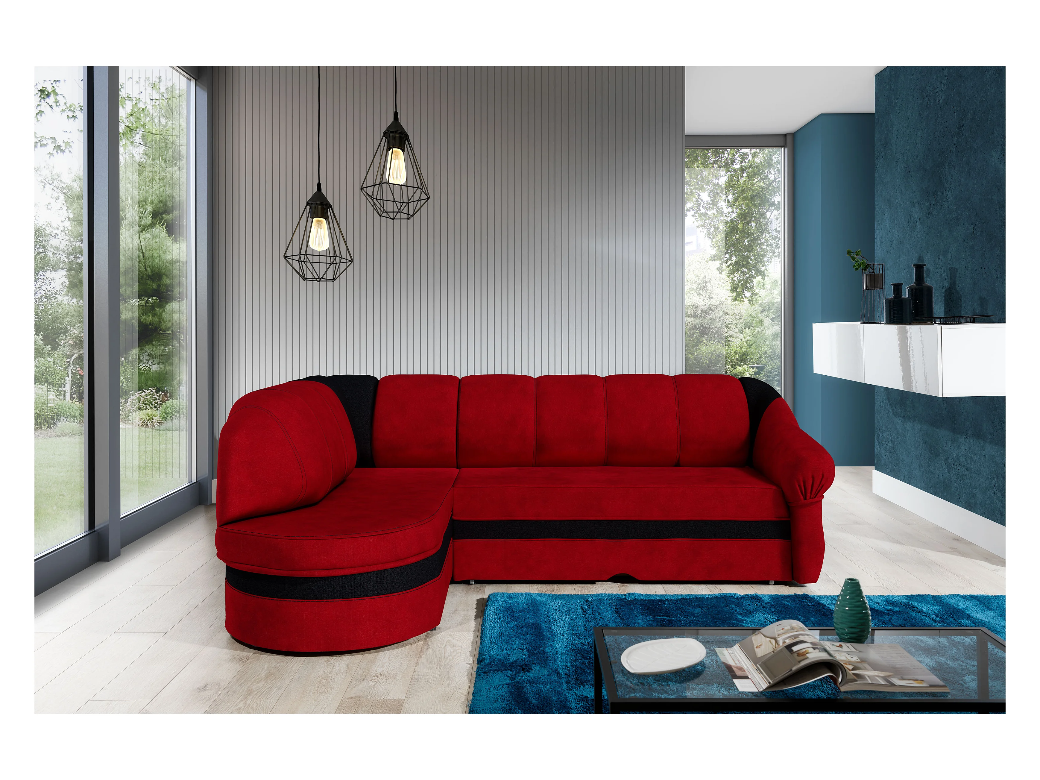 Canapé d'angle gauche convertible tissu rouge et noir Sundy 250cm