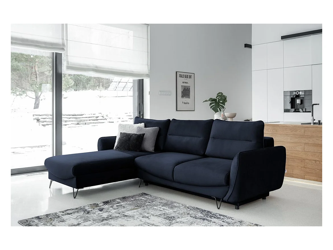 Canapé d'angle gauche convertible velours bleu marine Zurik 276cm