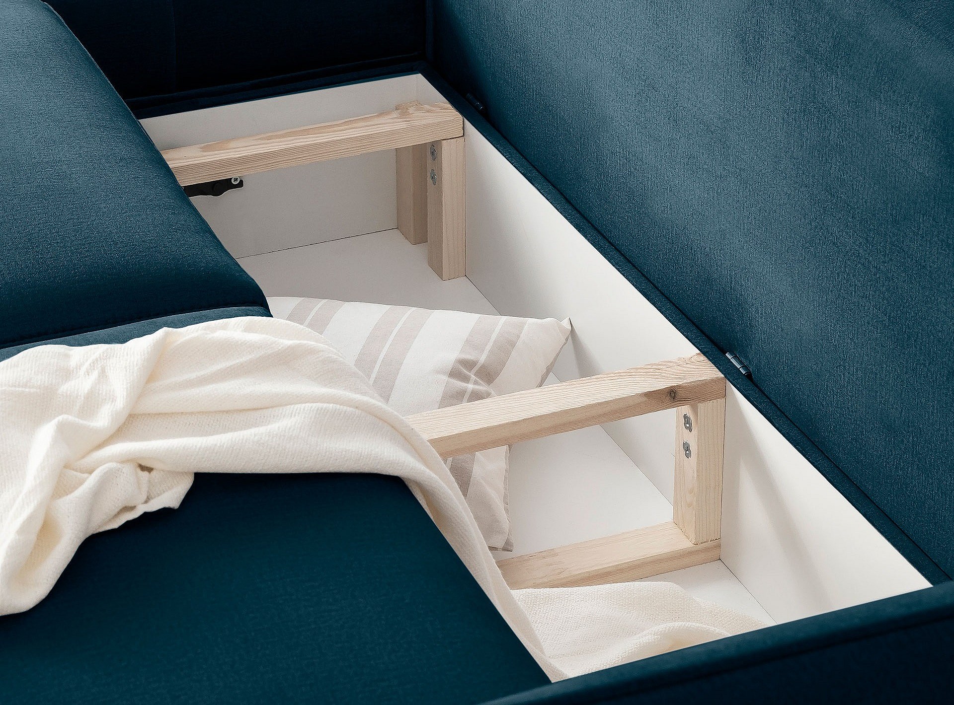 Canapé d'angle convertible tissu ZURIK - Coffre de rangement et pieds métal noir-Jaune miel-angle gauche