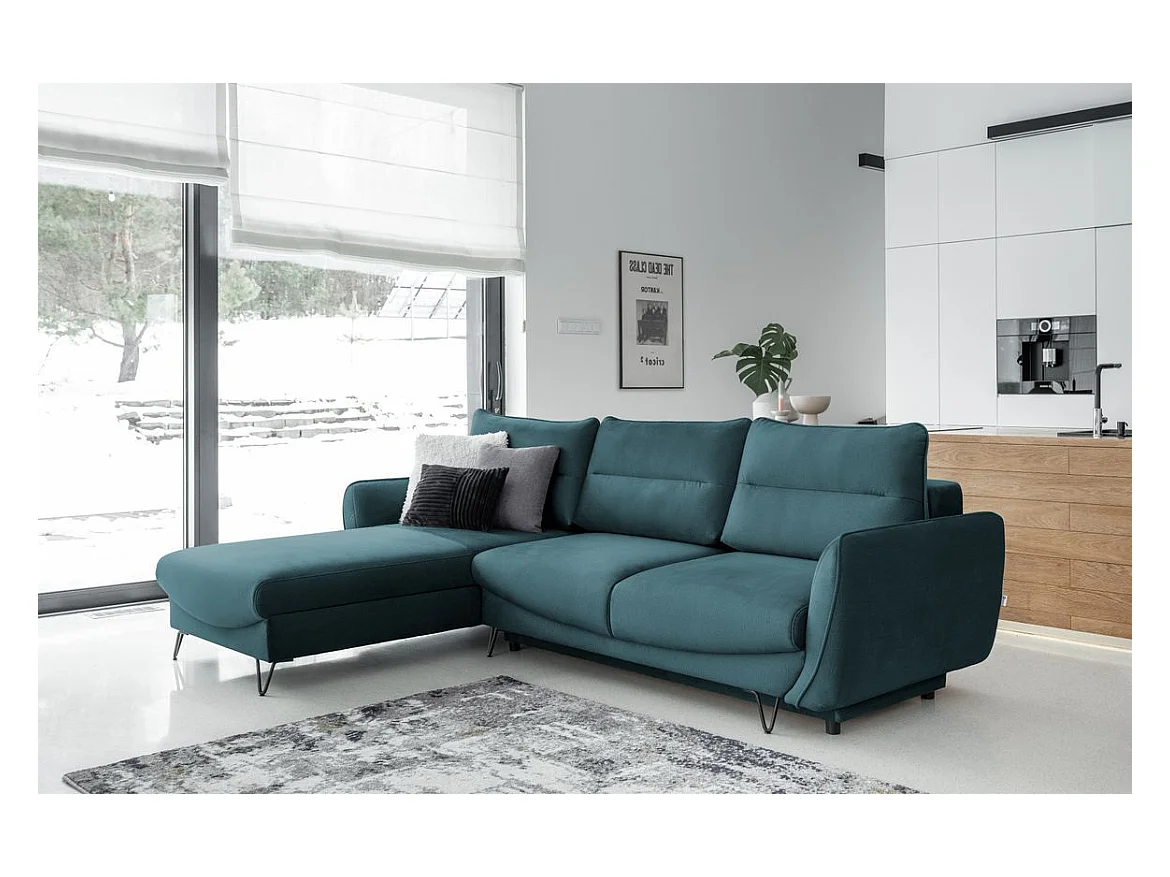 Canapé d'angle gauche convertible velours vert bleuté Zurik 276cm