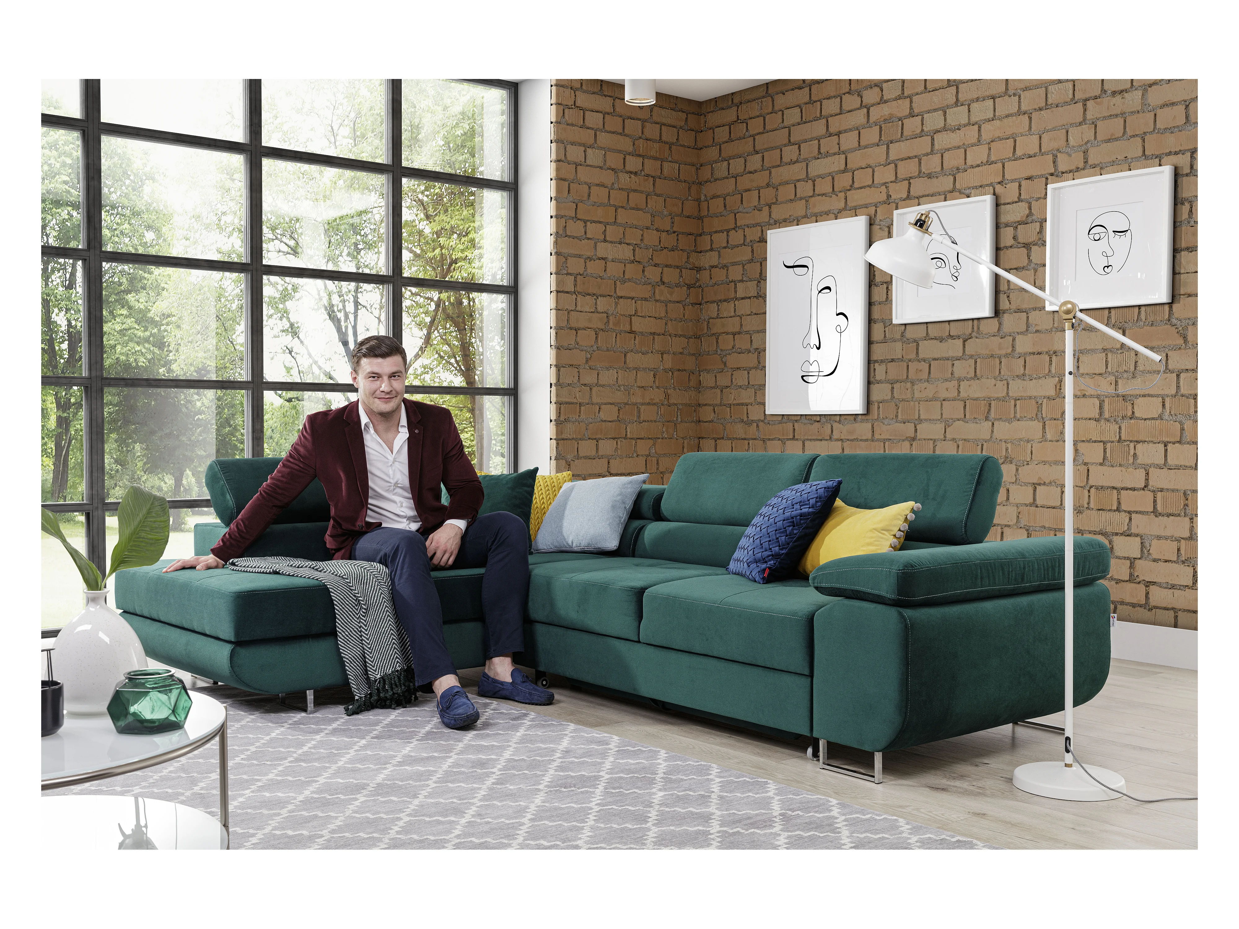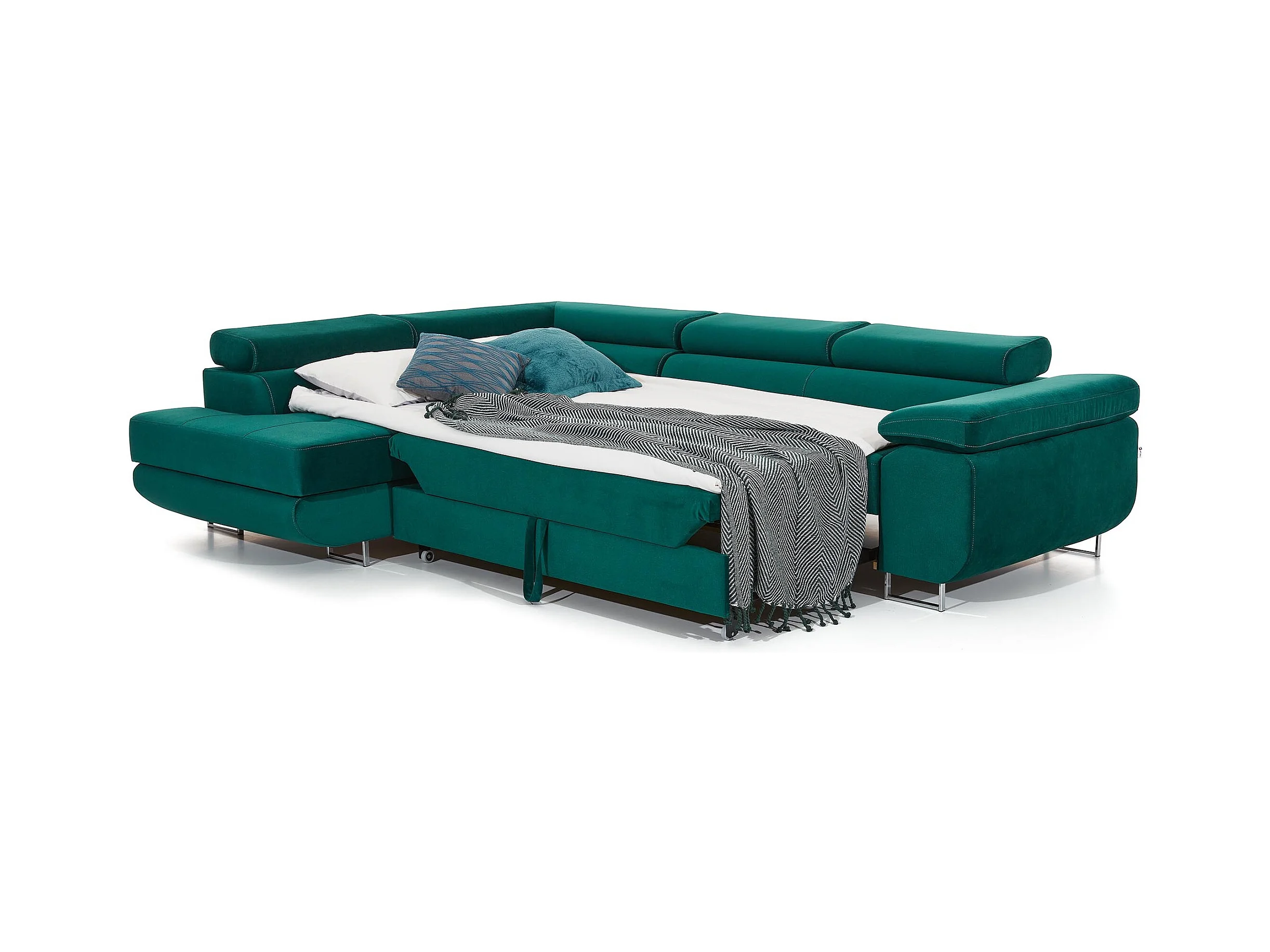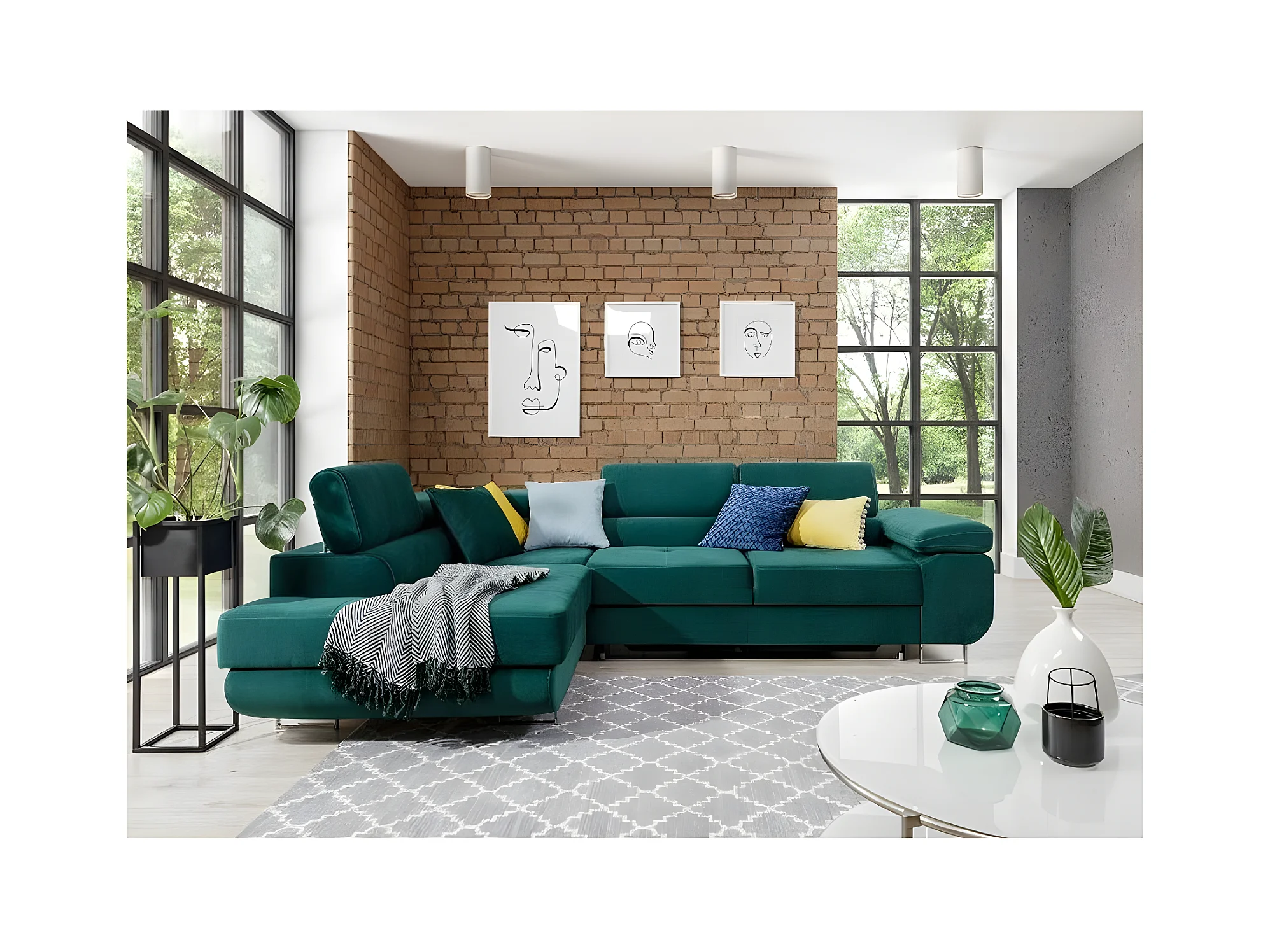 Canapé d'angle gauche convertible velours vert sapin Marka 275cm