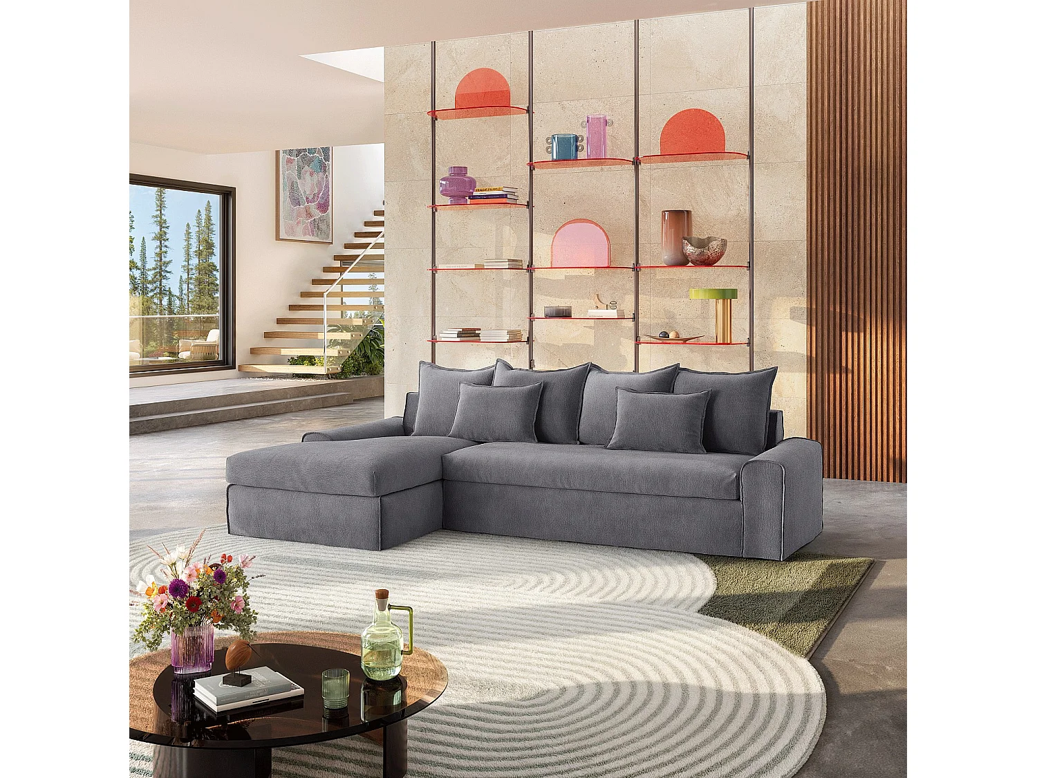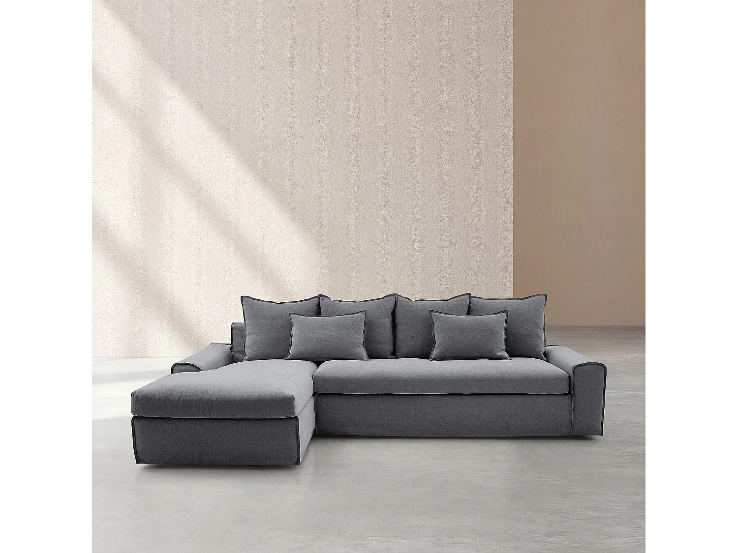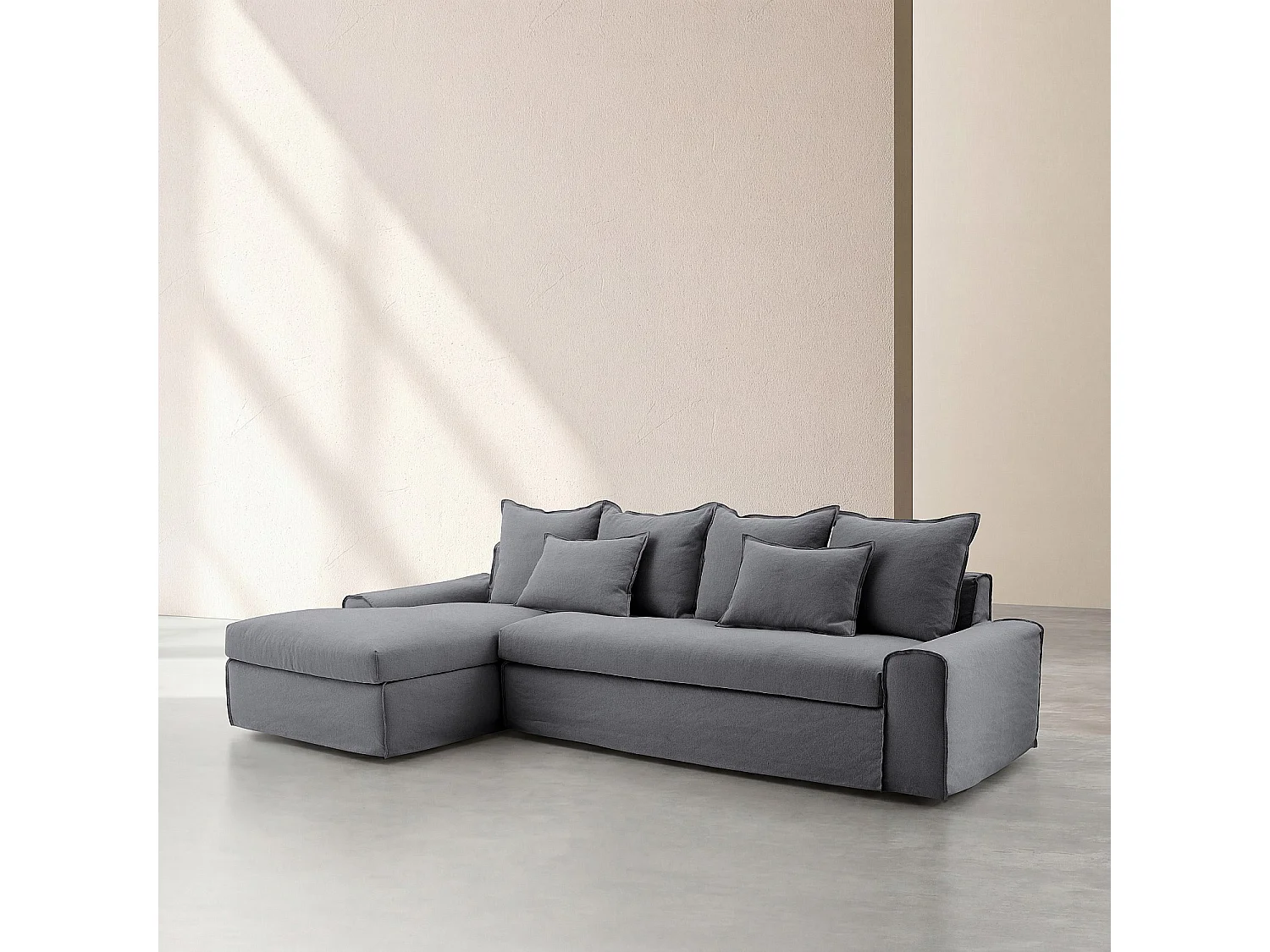 Canapé d'angle gauche déhoussable en coton et lin garni de plumes - Gris ardoise