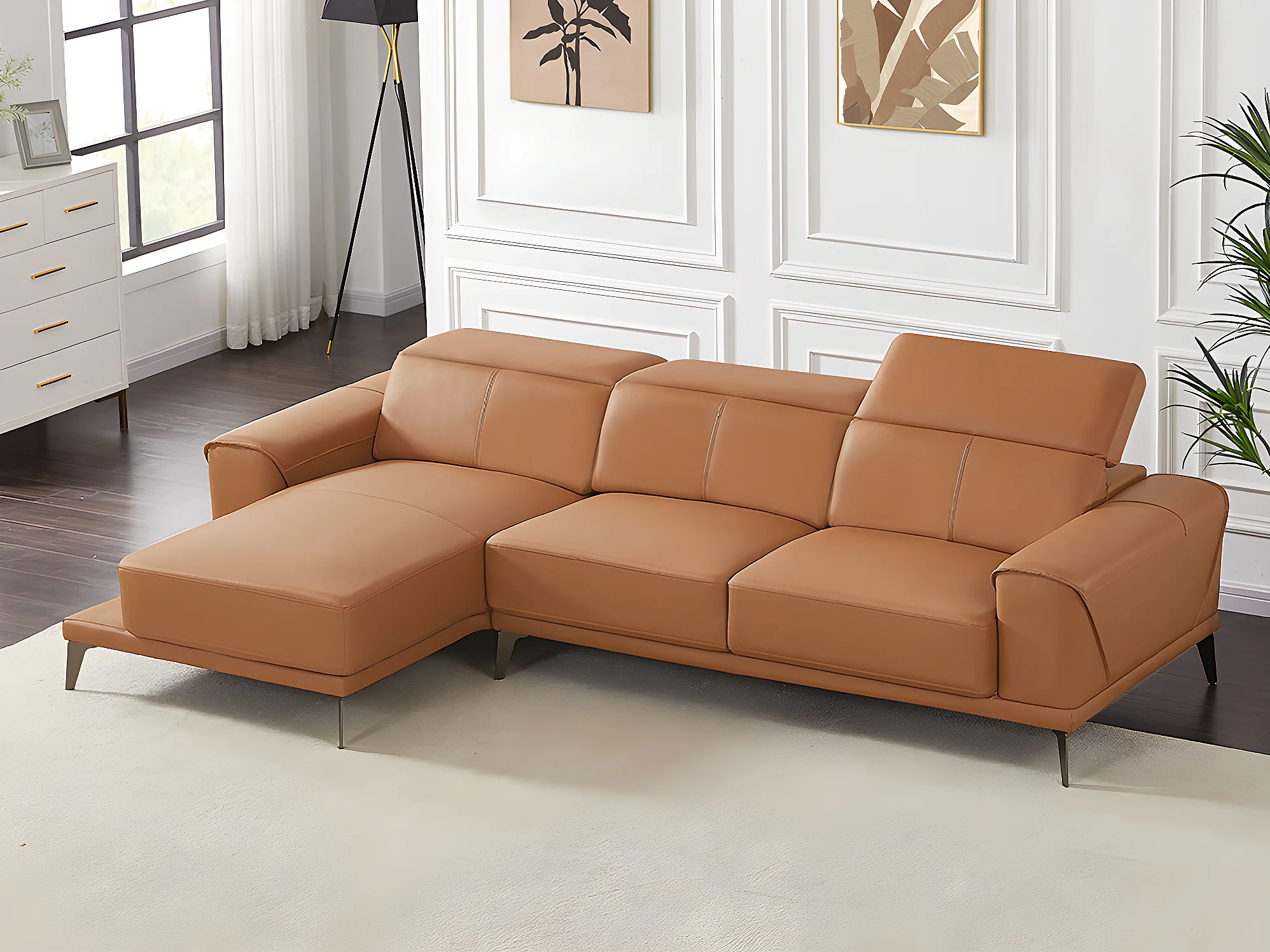 Canapé d'angle gauche en cuir de buffle camel ANDOR