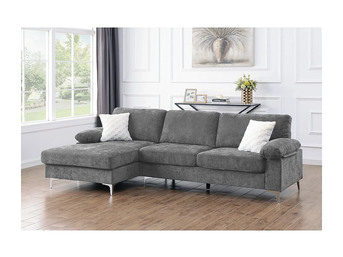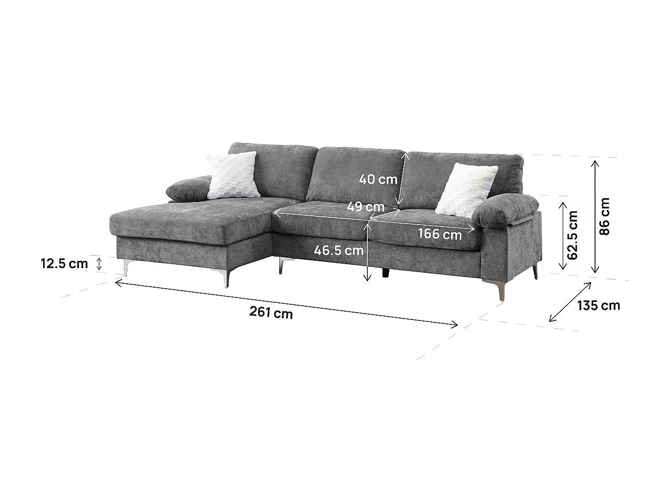 Canapé d'angle gauche en tissu chenille "Jade" - 3 places - Gris clair
