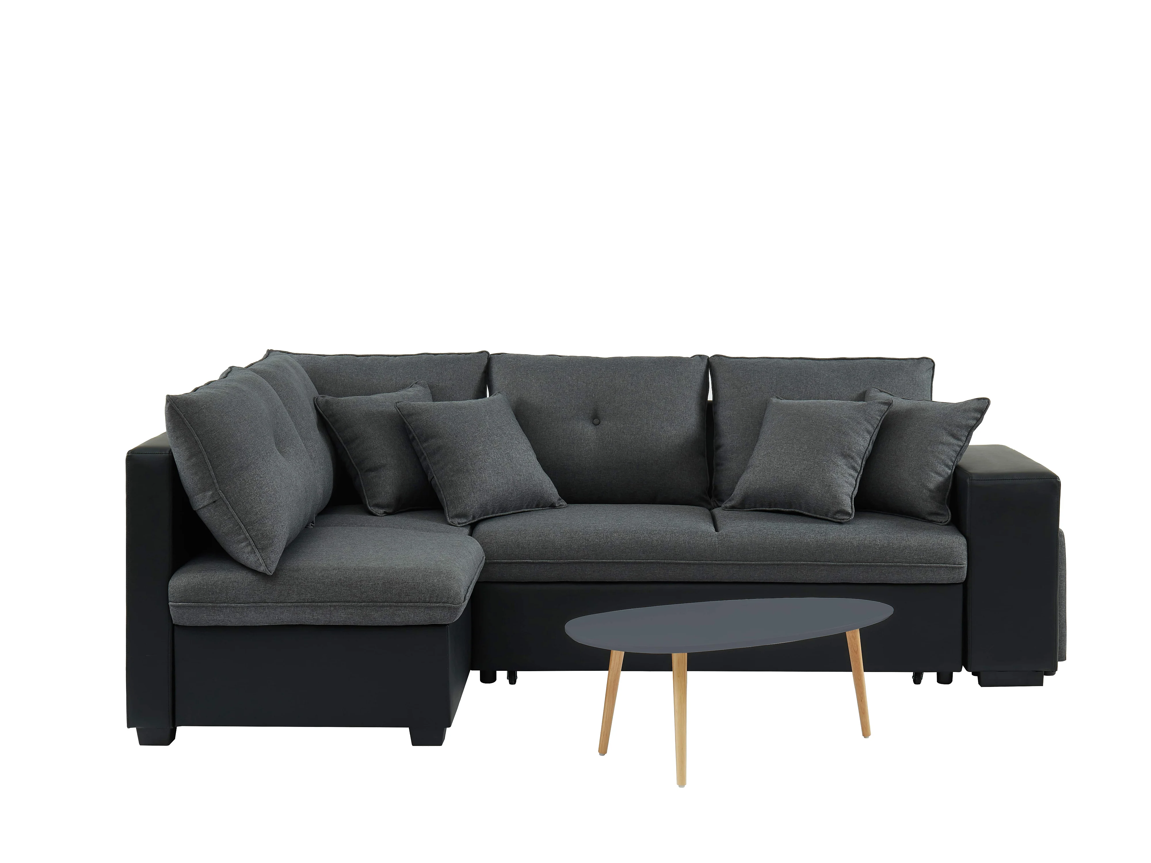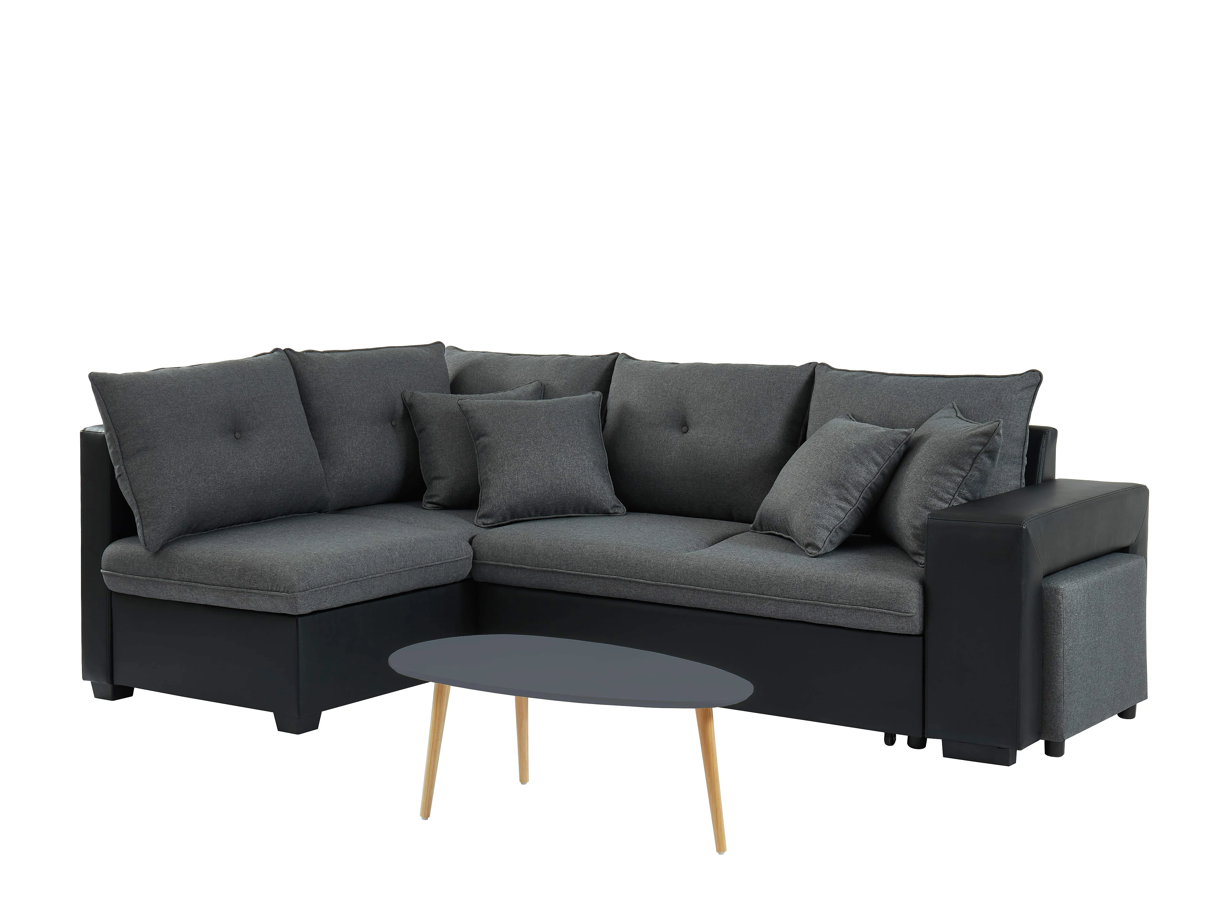Canapé d'angle gauche KOSELIG anthracite gris convertible table basse grise et pouf