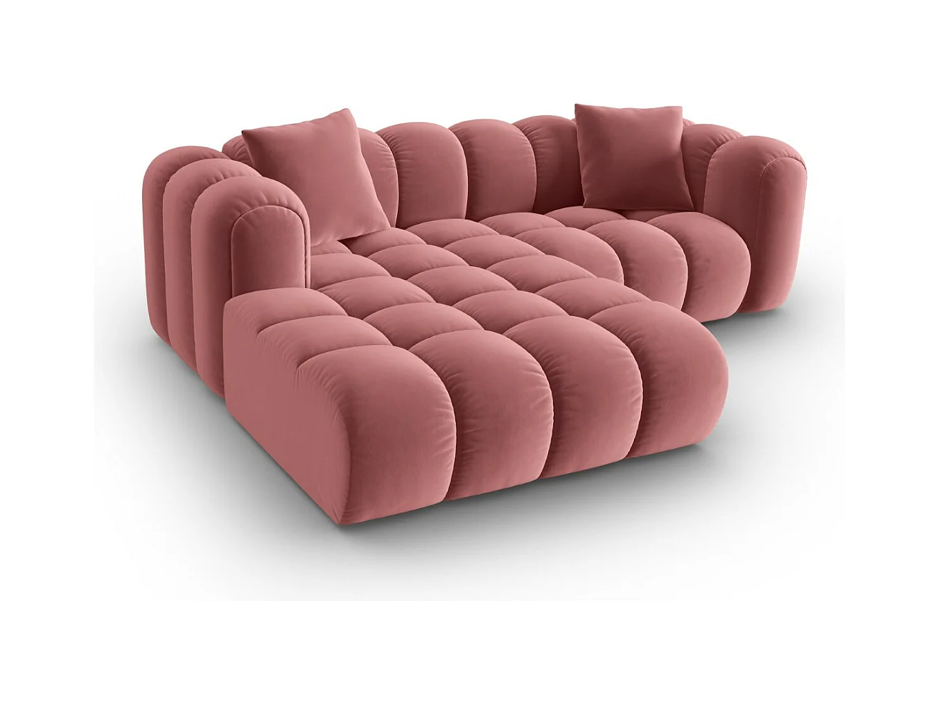 CXL by Christian Lacroix - Canapé d'angle gauche modulable "Clotilde" 3 places en velours saumon - 187x190x70cm