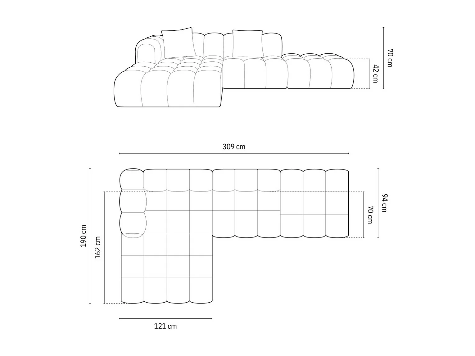CXL by Christian Lacroix - Canapé d'angle gauche modulable "Clotilde" 4 places en tissu structurel gris - 309x190x70cm