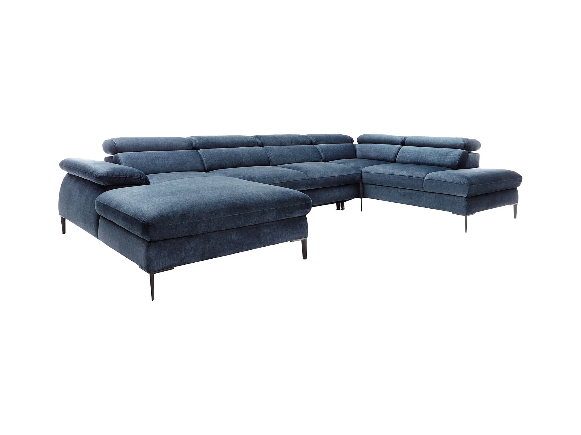 Grand canapé d'angle gauche panoramique convertible en velours bleu nuit SEPINA de Pascal Morabito