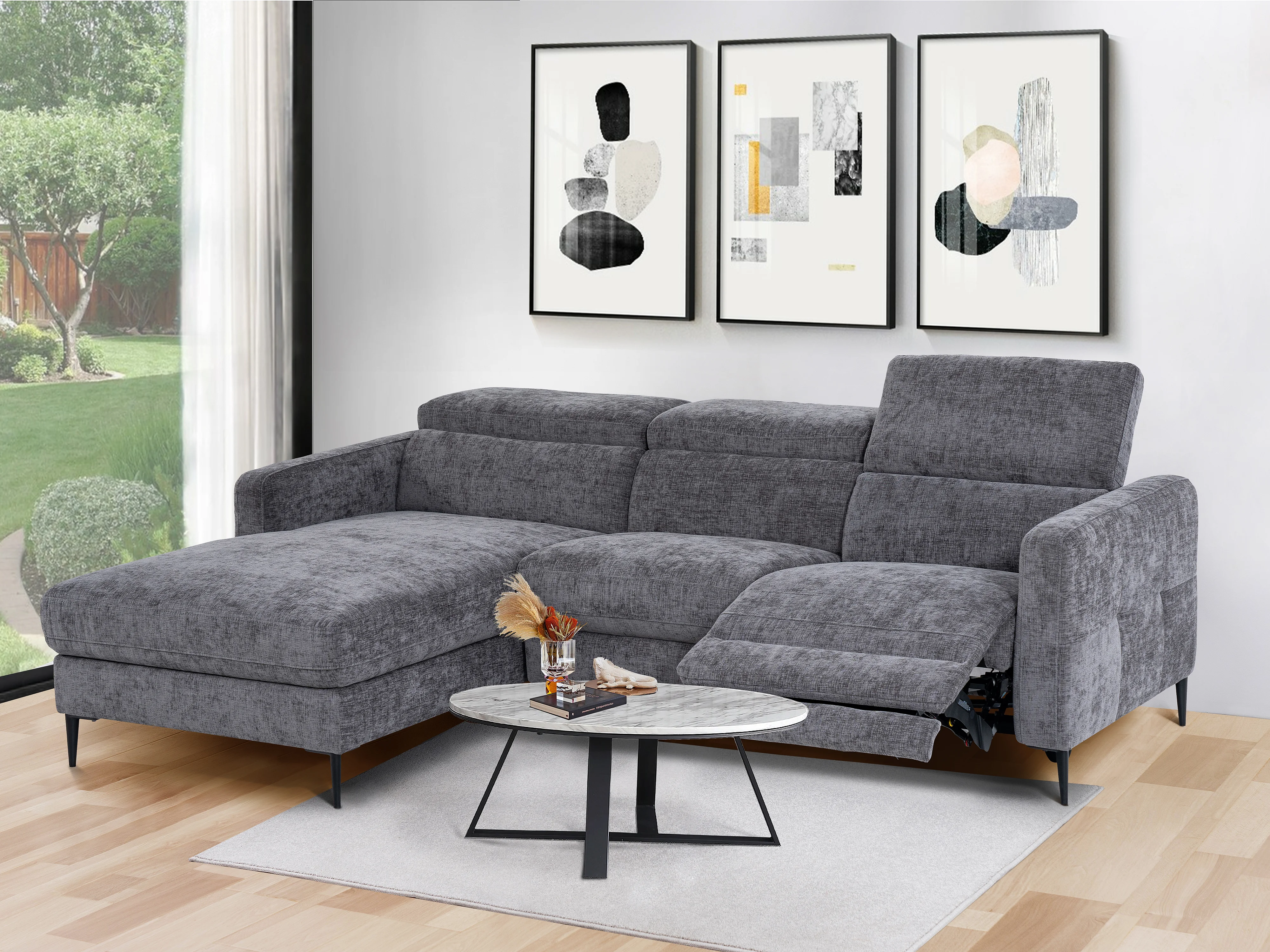 Canapé d'angle gauche relax électrique en tissu gris anthracite FUSETA