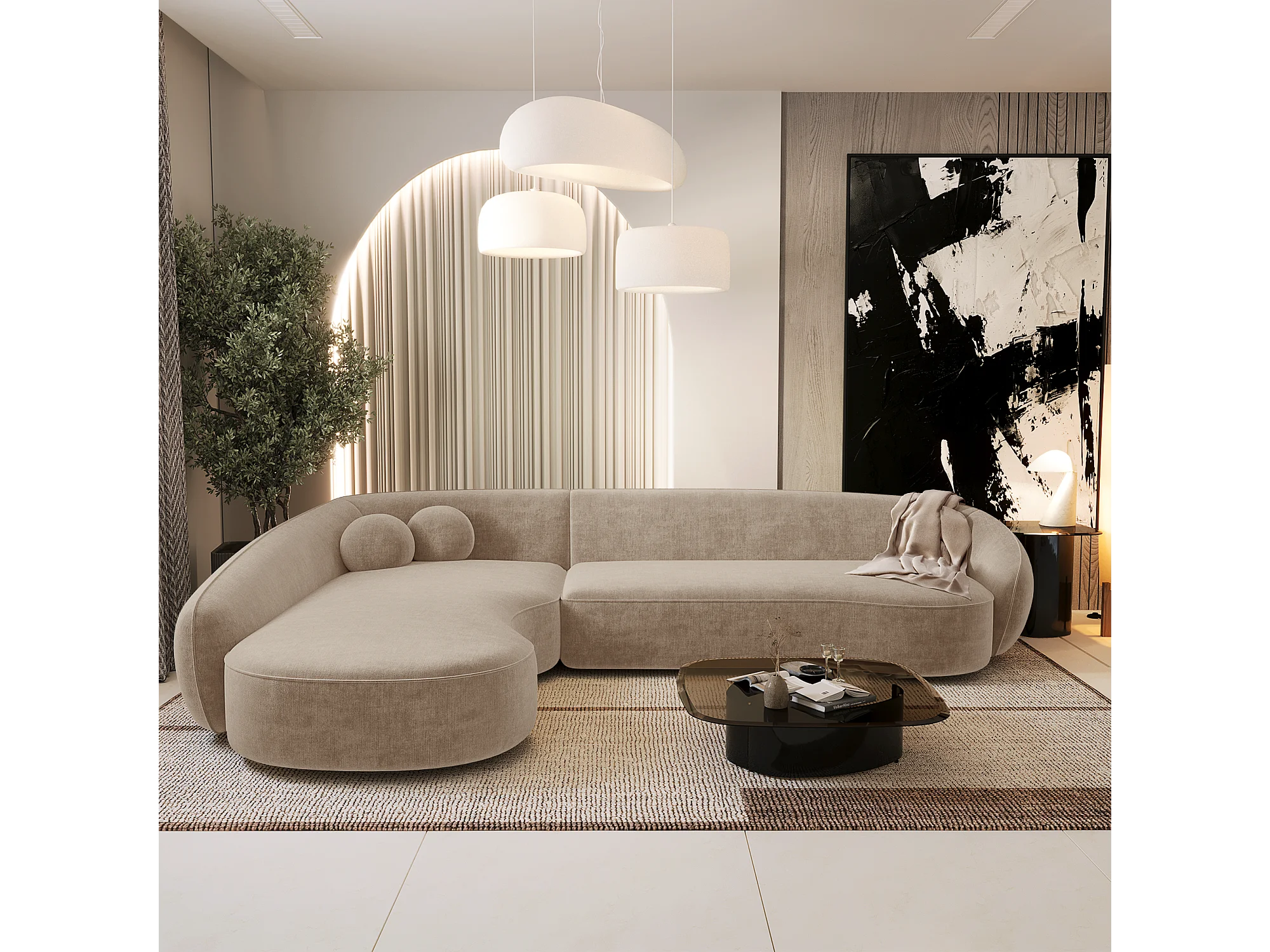 Canapé d'angle gauche 4 places tissu tramé toucher doux taupe COOPER