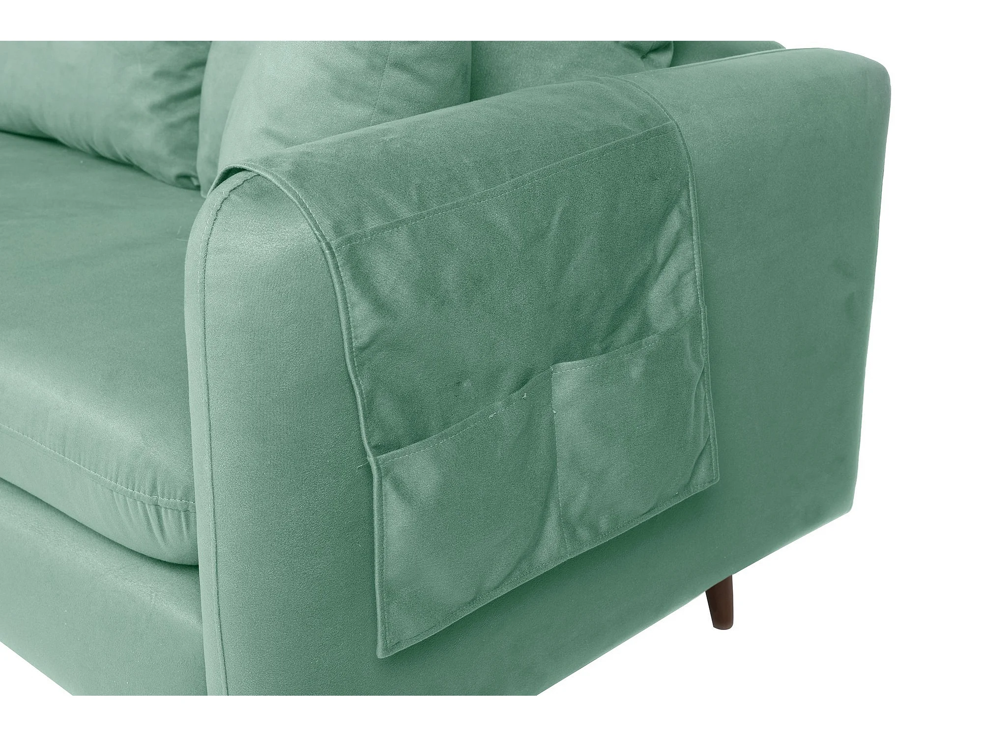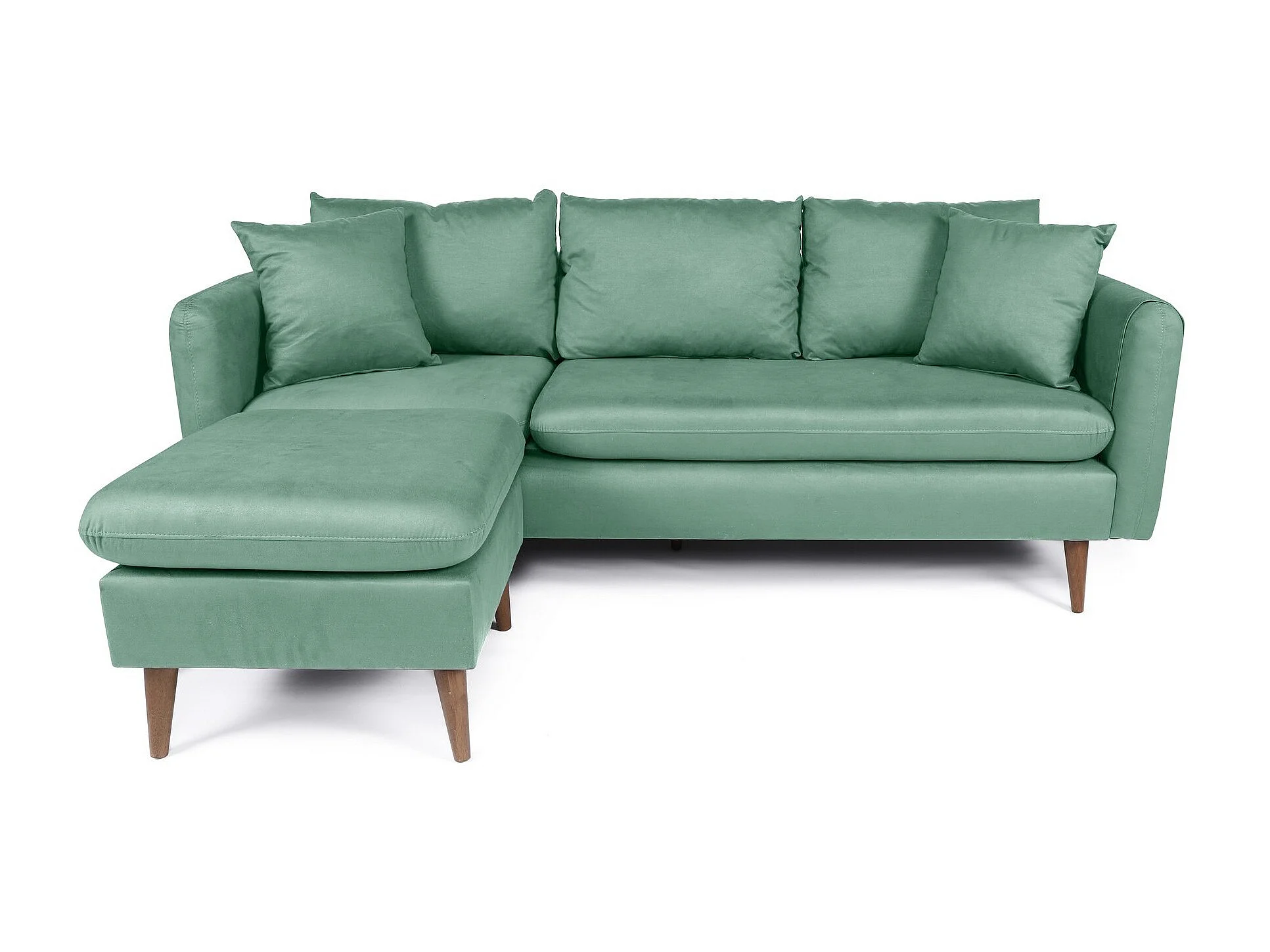 Canapé d'angle gauche tissu vert d'eau avec pieds en bois naturel Rival 215cm