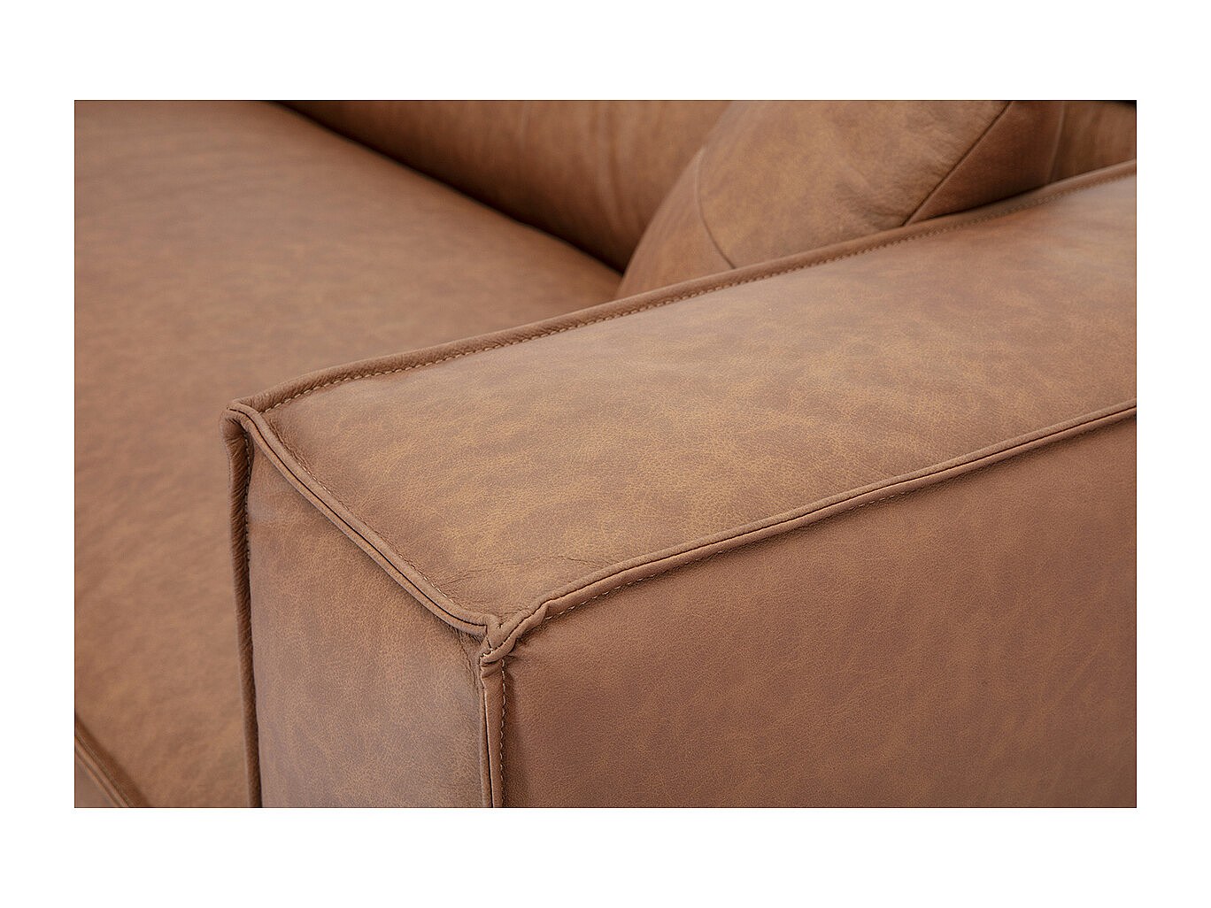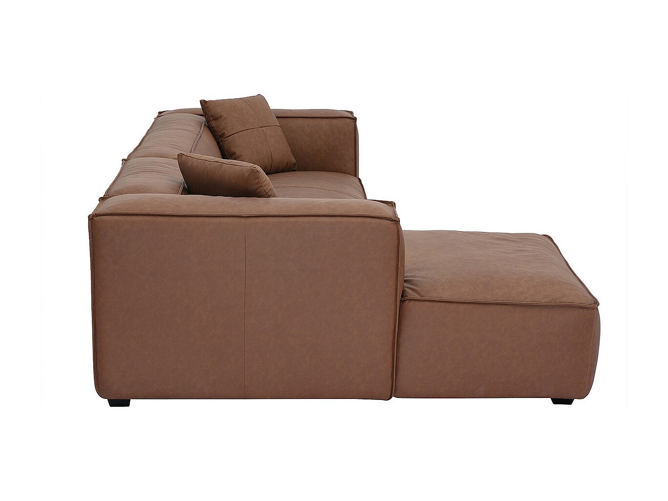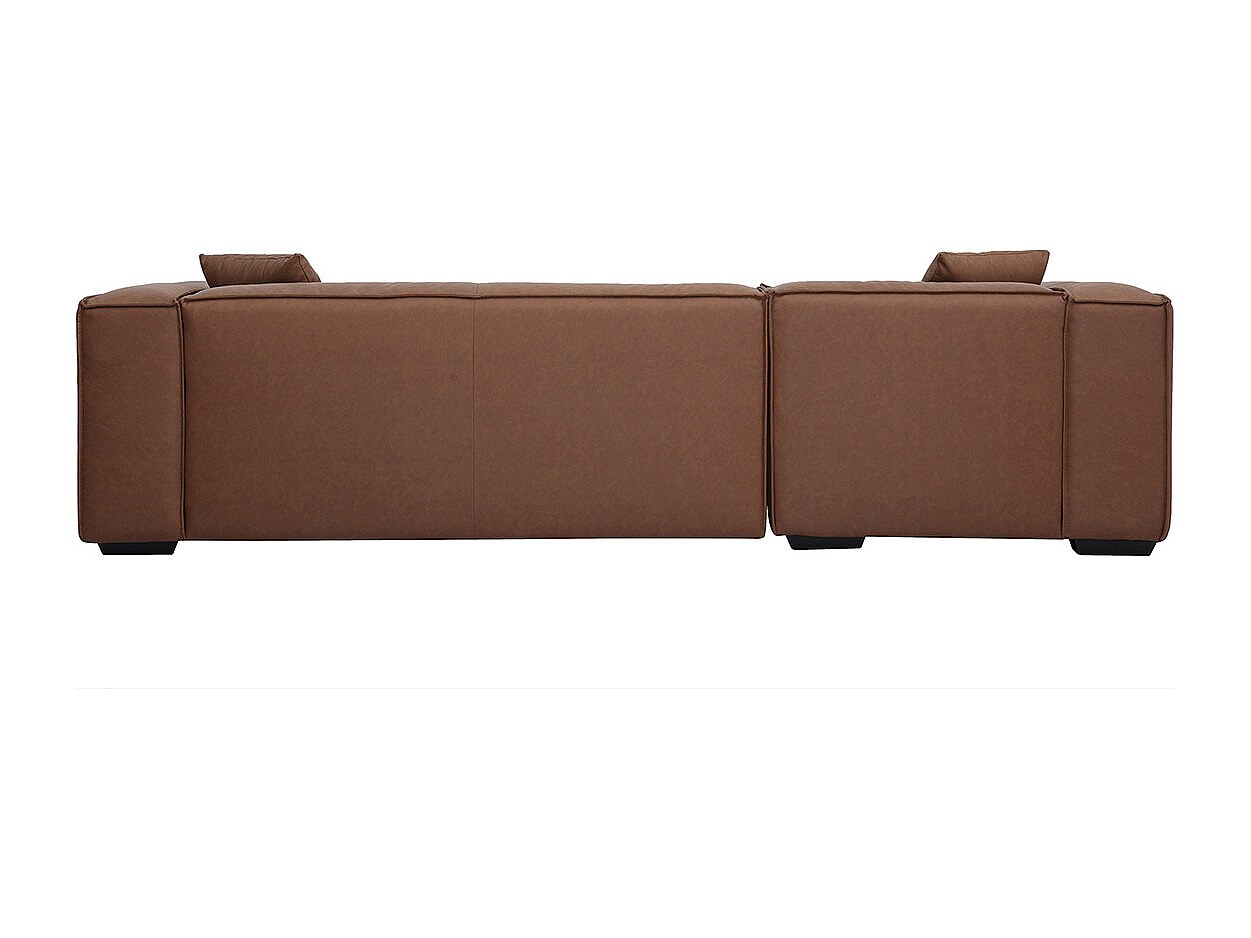 Canapé d'angle gauche vintage 4-5 places en cuir marron et bois noir COBAIN