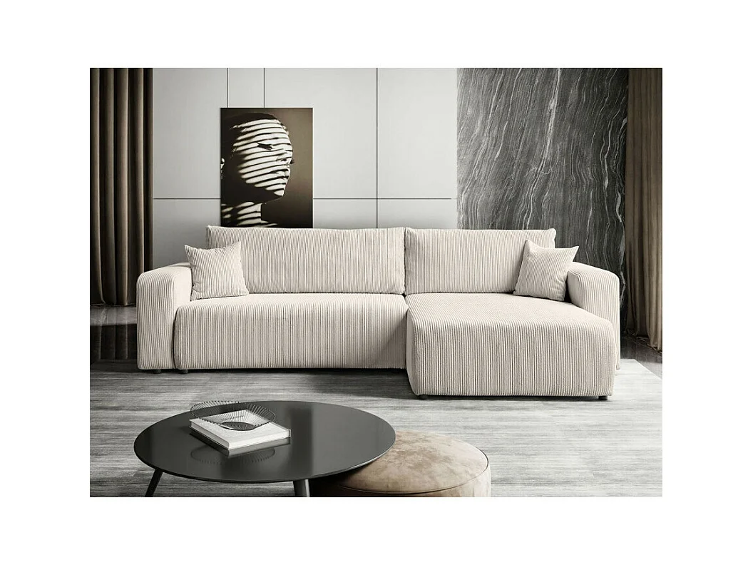 Canapé d'angle GOYA XL convertible réversible 277 cm coffre de rangement tissu velours côtelé