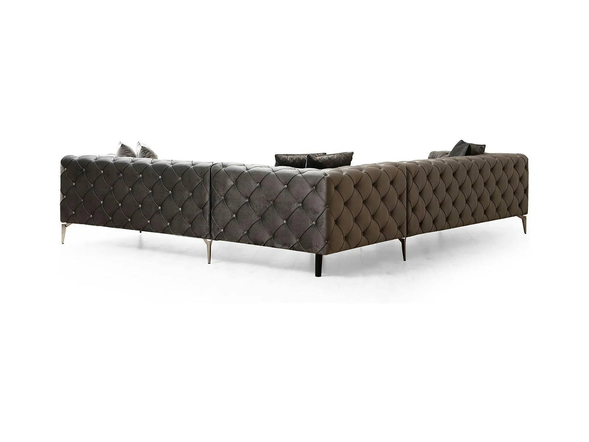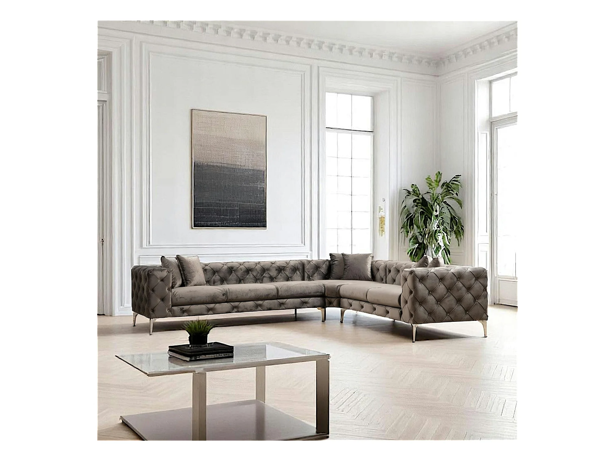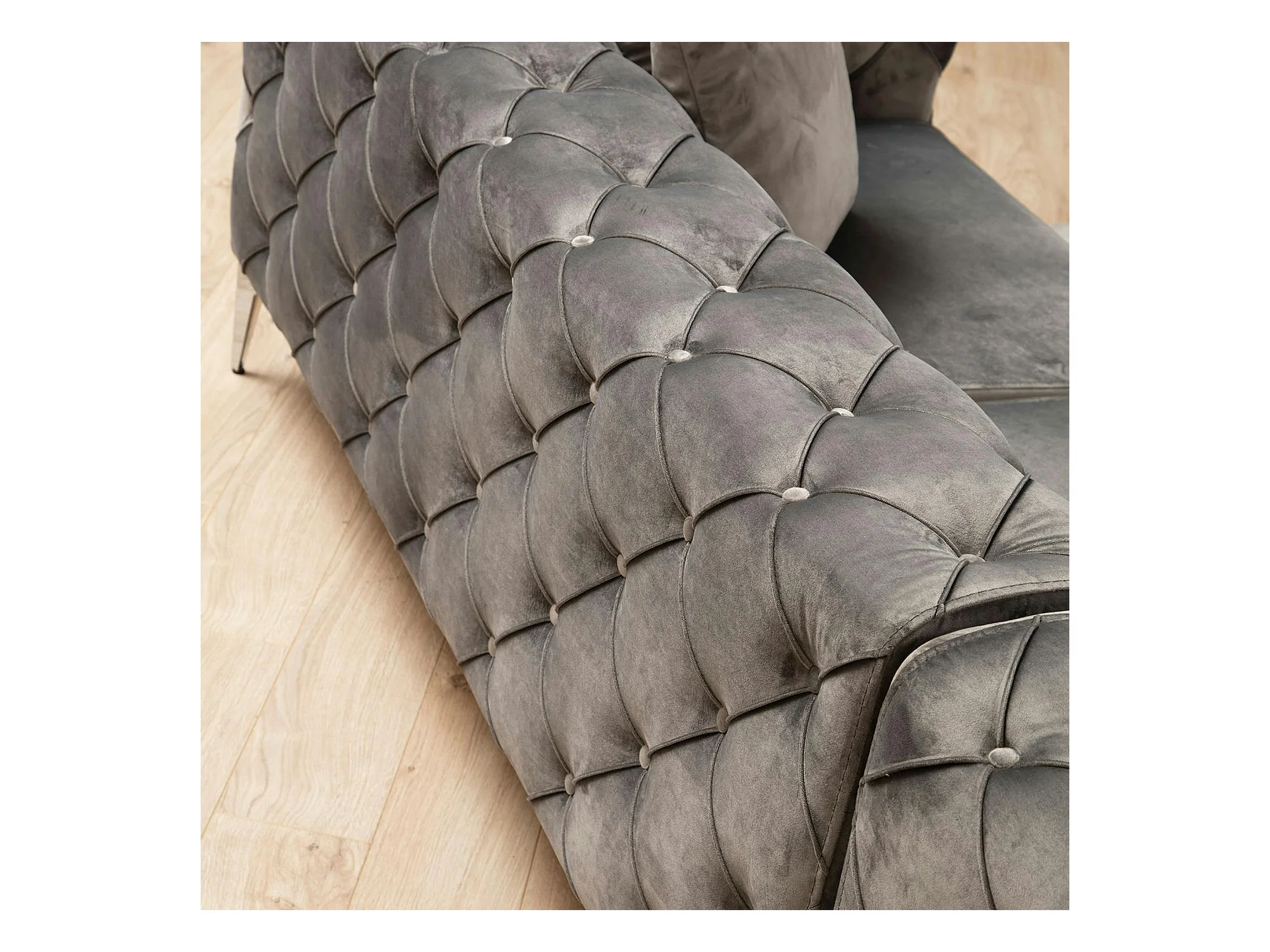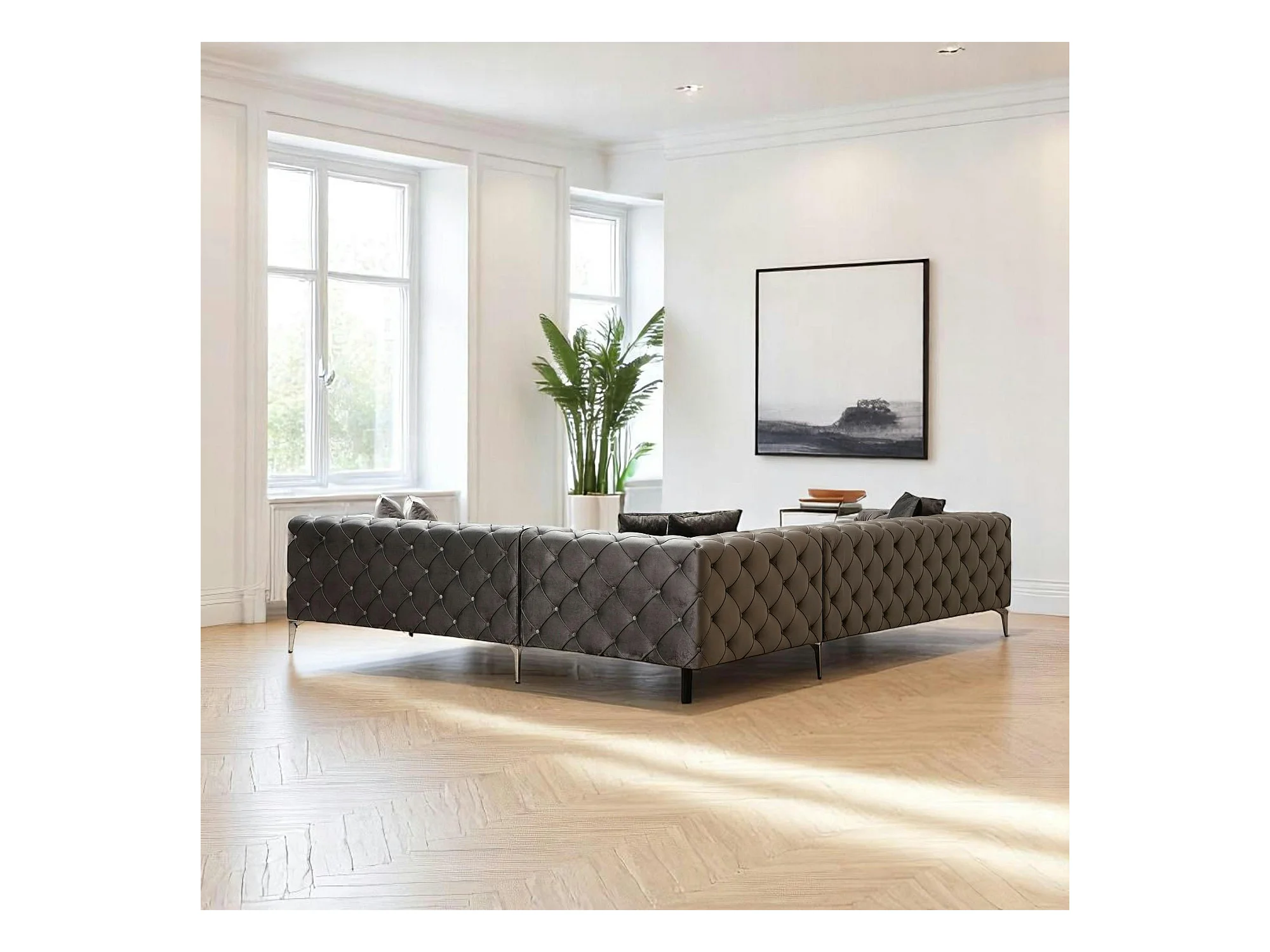 Canapé d'angle gris en velours capitonné - côté droit DOVER