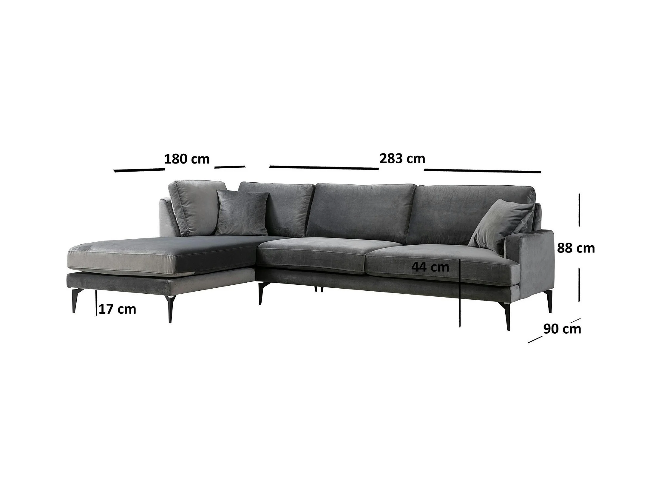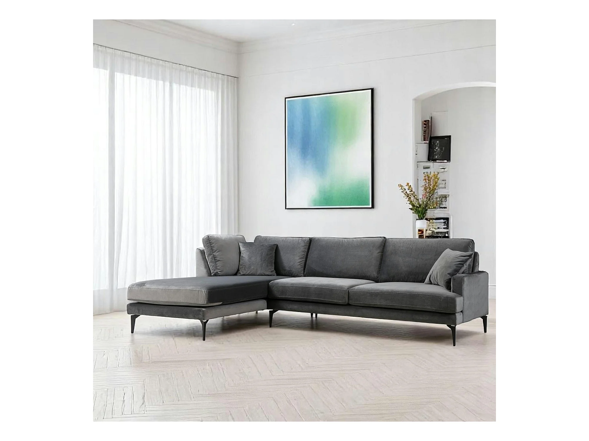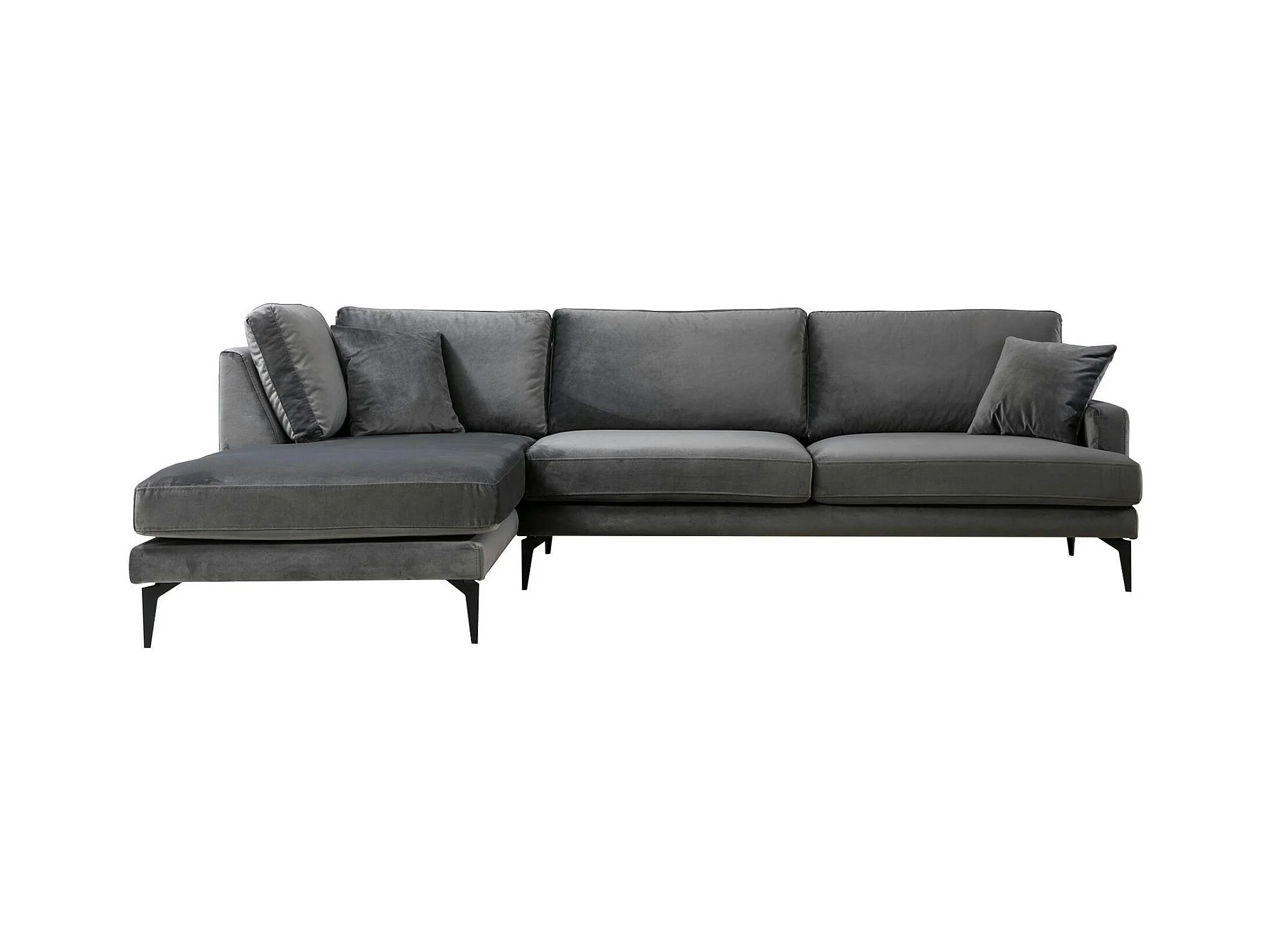 Canapé d'angle gris en velours - côté gauche SEATTLE