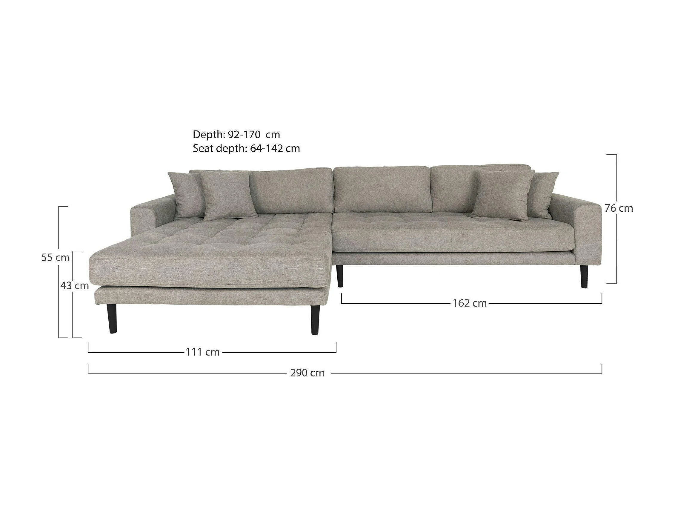 Canapé d'angle gris minéral - côté gauche, 290 cm AMSTERDAM