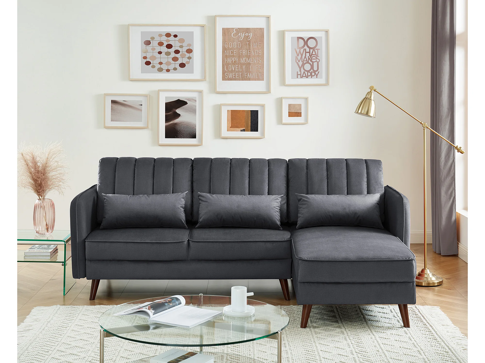 Canapé angle IDAHO tissu anthracite angle fixe