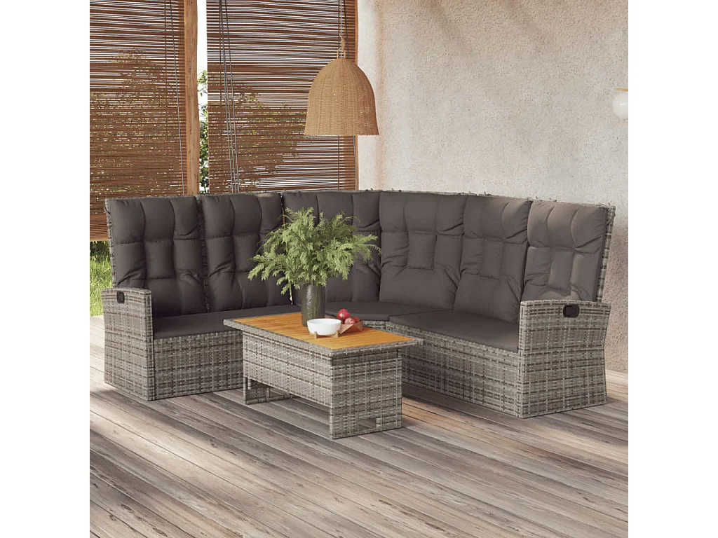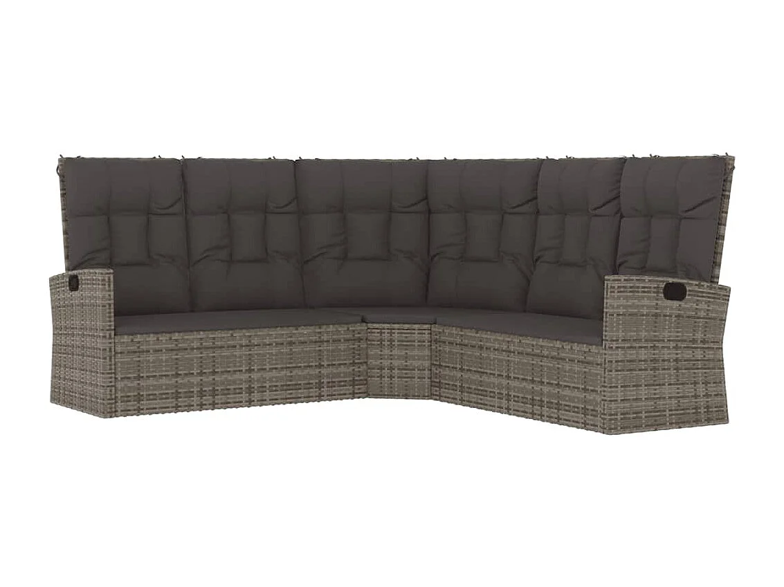 Canapé d'angle inclinable avec coussins gris résine tressée