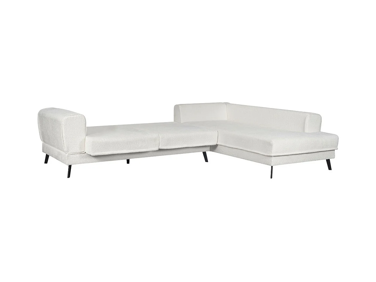 Canapé d'angle droit 4 places India convertible 2 coffres en bouclettes - Blanc - L304 x 212 x 86cm - Loungitude