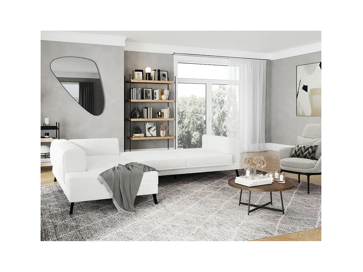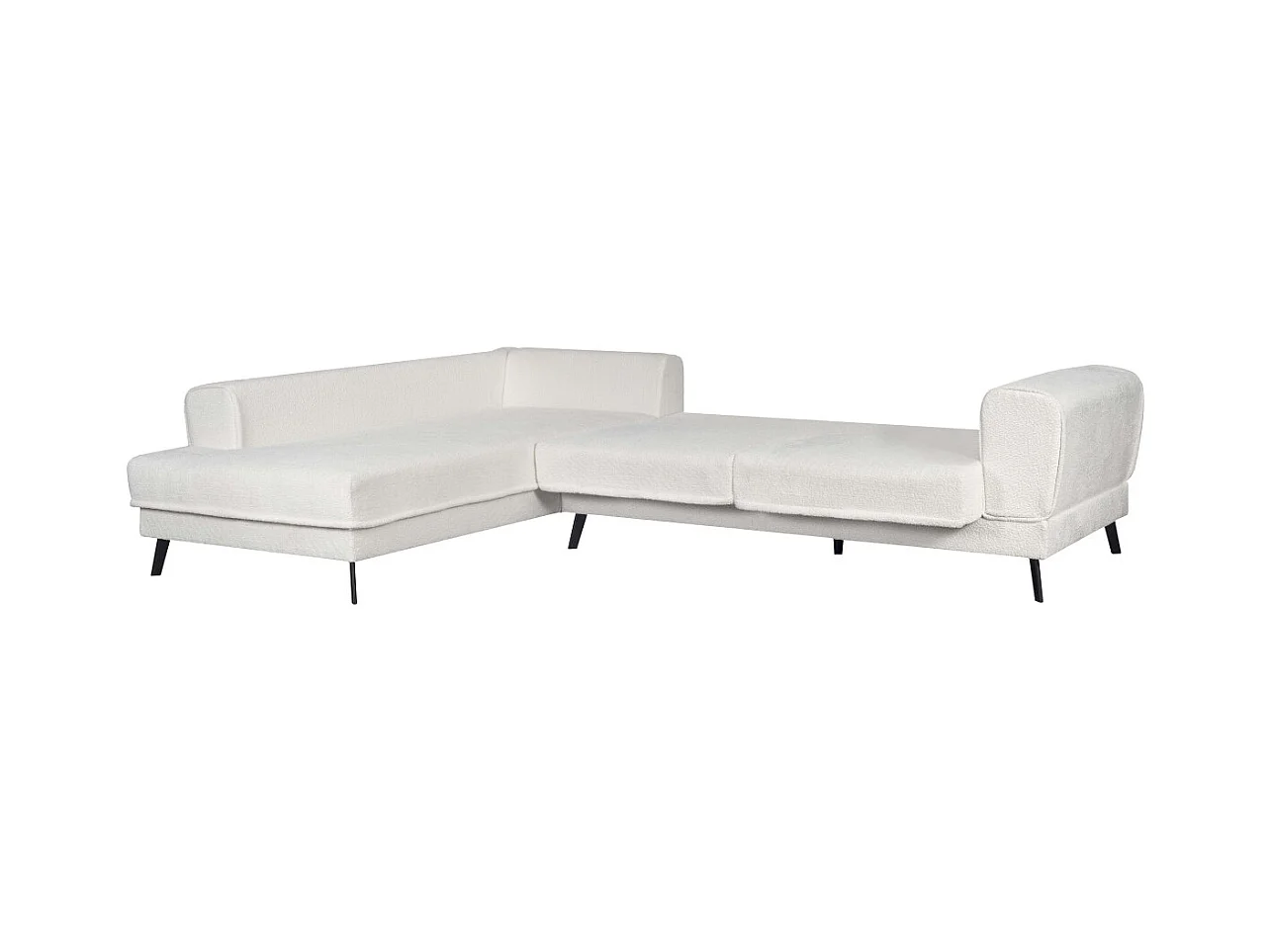 Canapé d'angle gauche 4 places India convertible 2 coffres en bouclettes - Blanc - L304 x 212 x 86cm - Loungitude