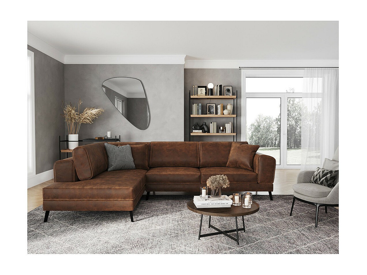 Canapé d'angle gauche India 4 places convertible 2 coffres en tissu marron industriel - Marron - L304 x 212 x 86cm - Loungitude