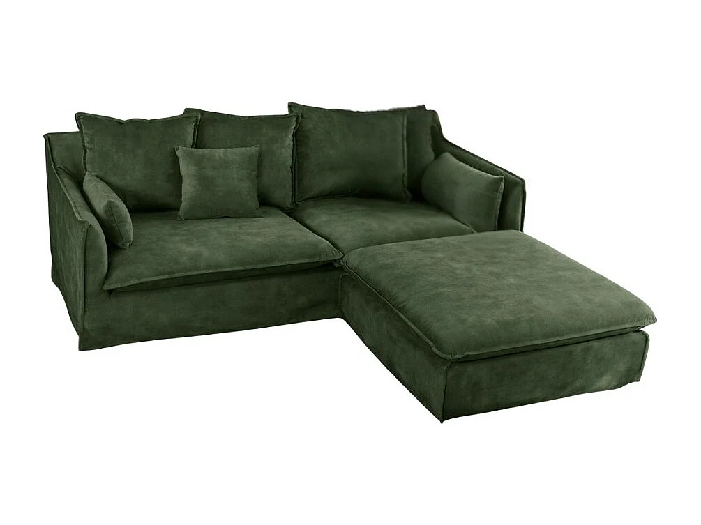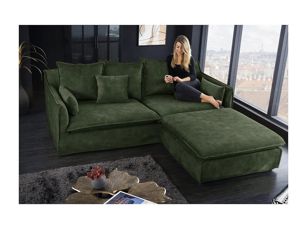 Canapé d'angle KALIA – Vert foncé – 4 places – Angle réversible – en velours – contemporain