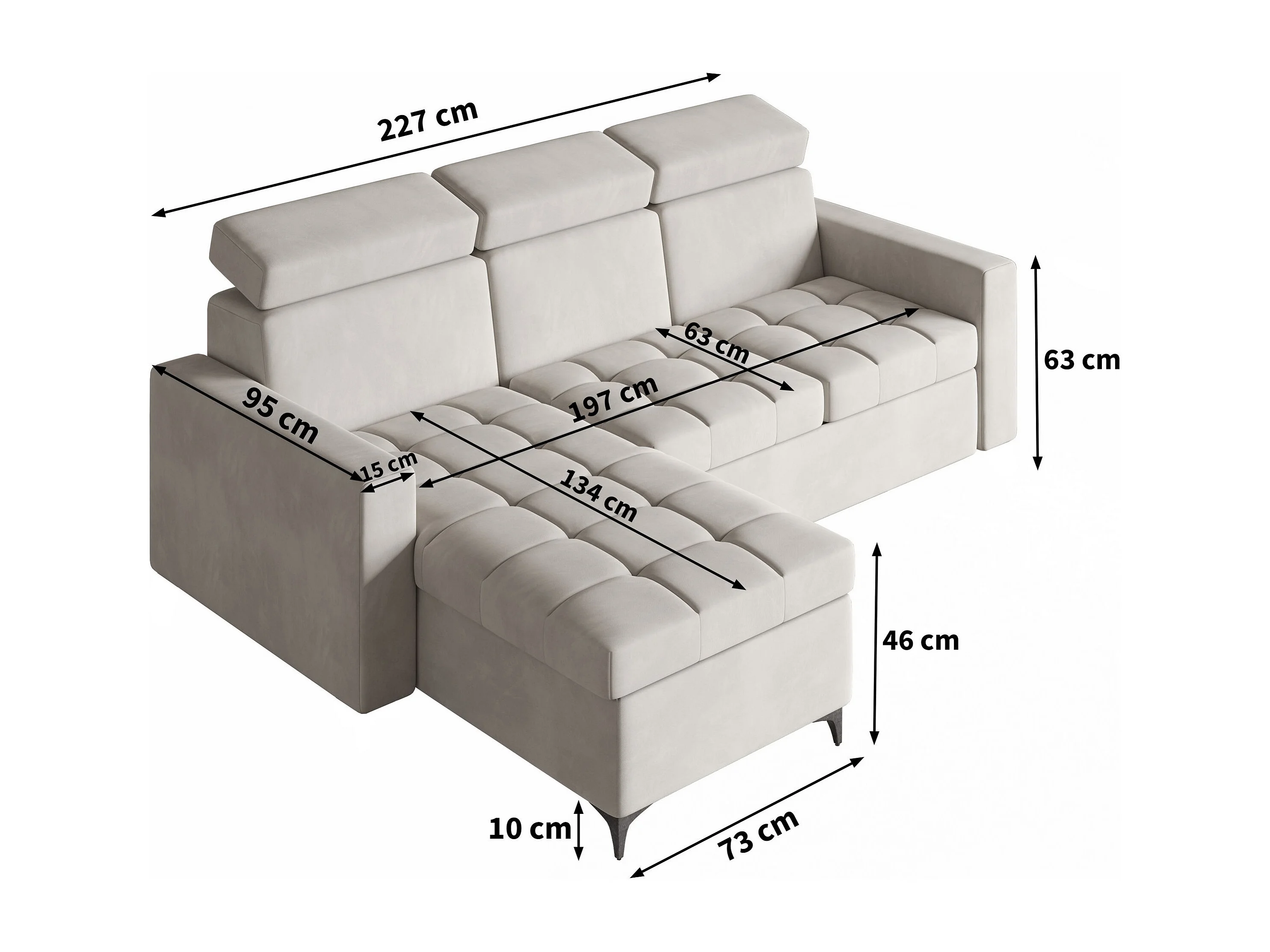 Canapé d'angle KAME Jaune en peluche avec fonction de couchage