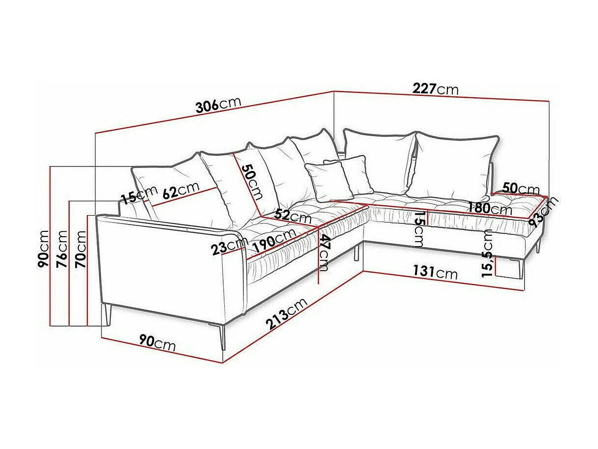 Canapé d'angle Kingsport 113, Gris, 306x227x90cm