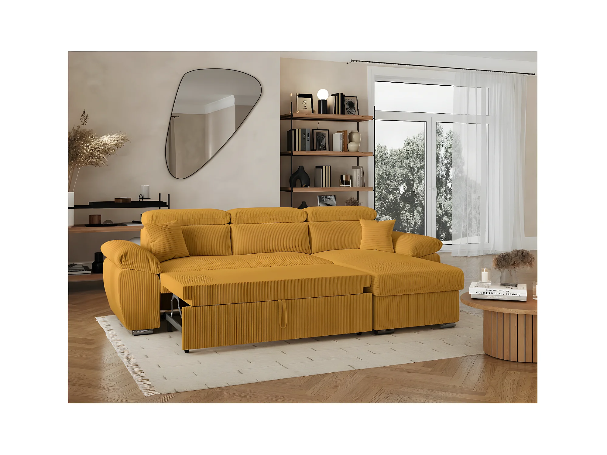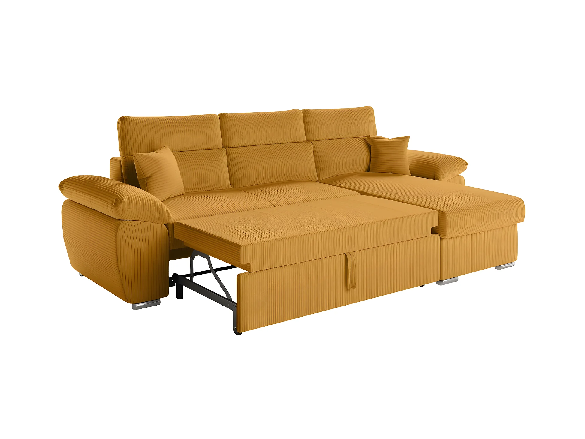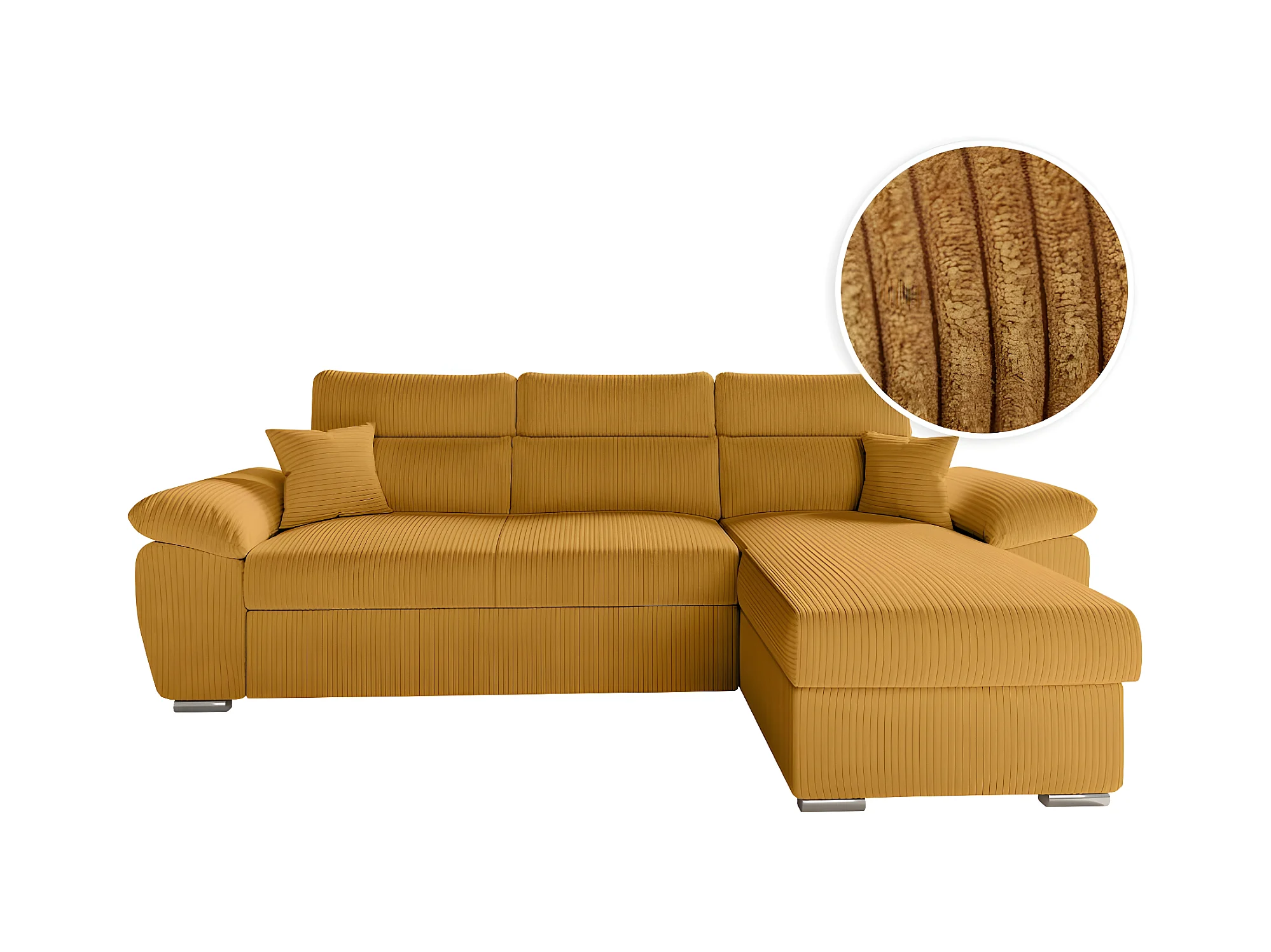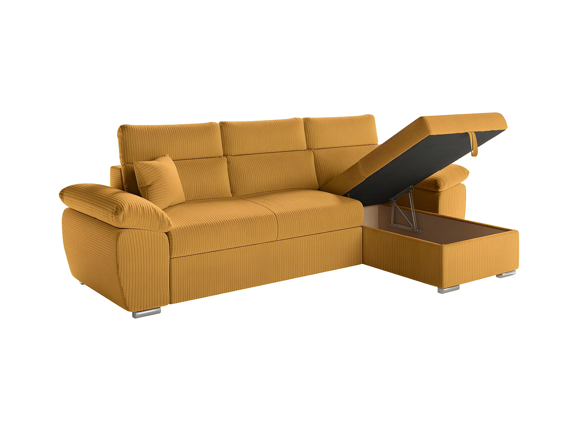 Canapé d'angle 4 places Komeco reversible convertible avec coffre en velours côtelé - Jaune - L265 x P166 x H91cm - Loungitude