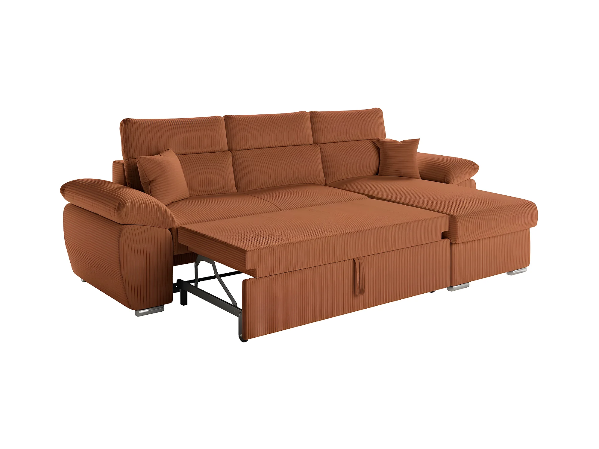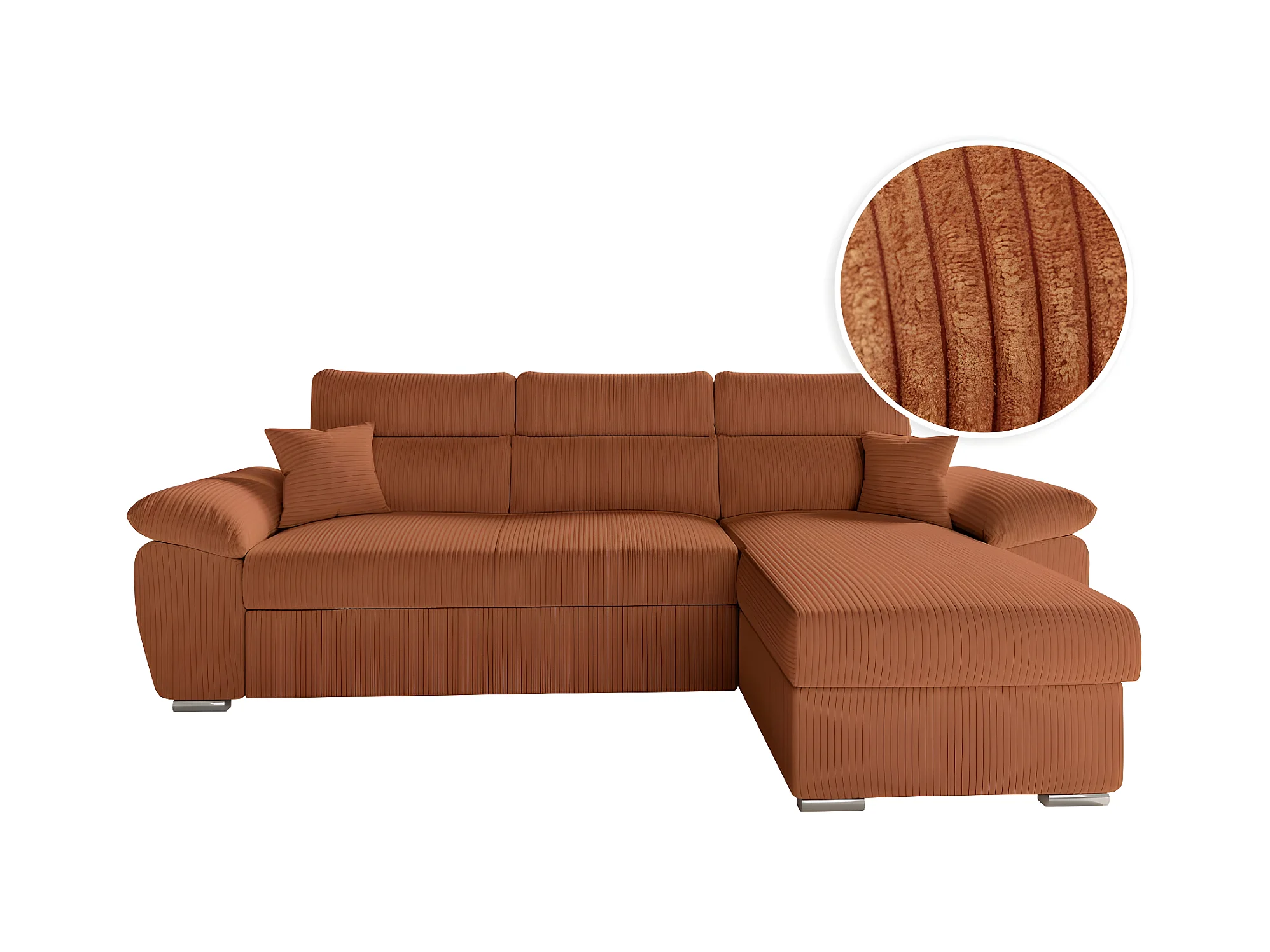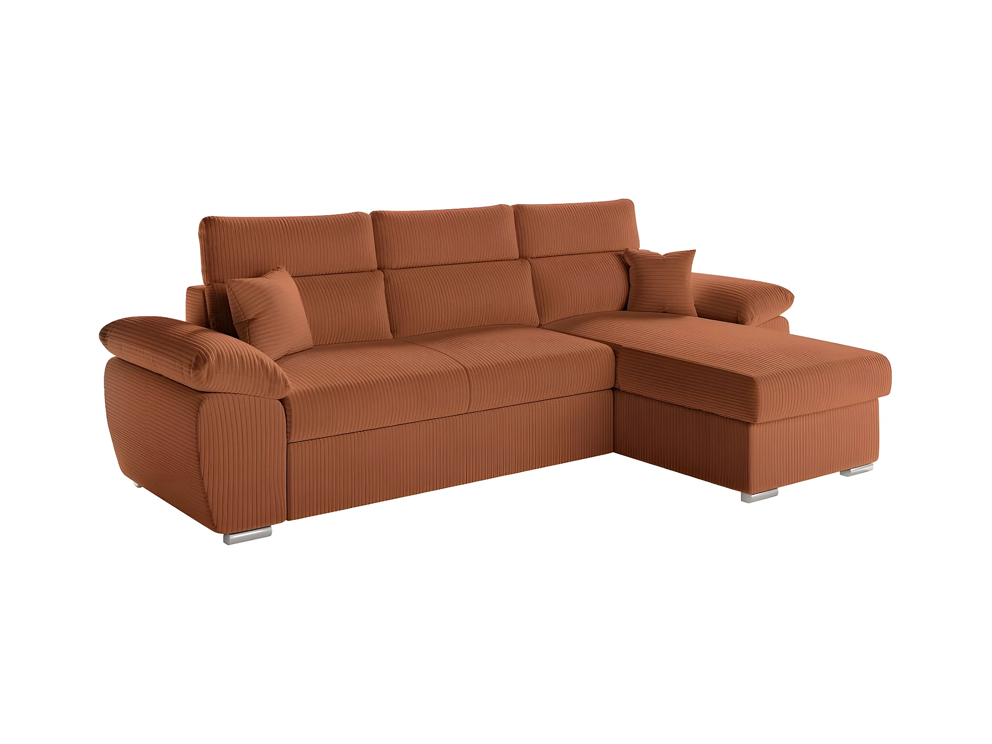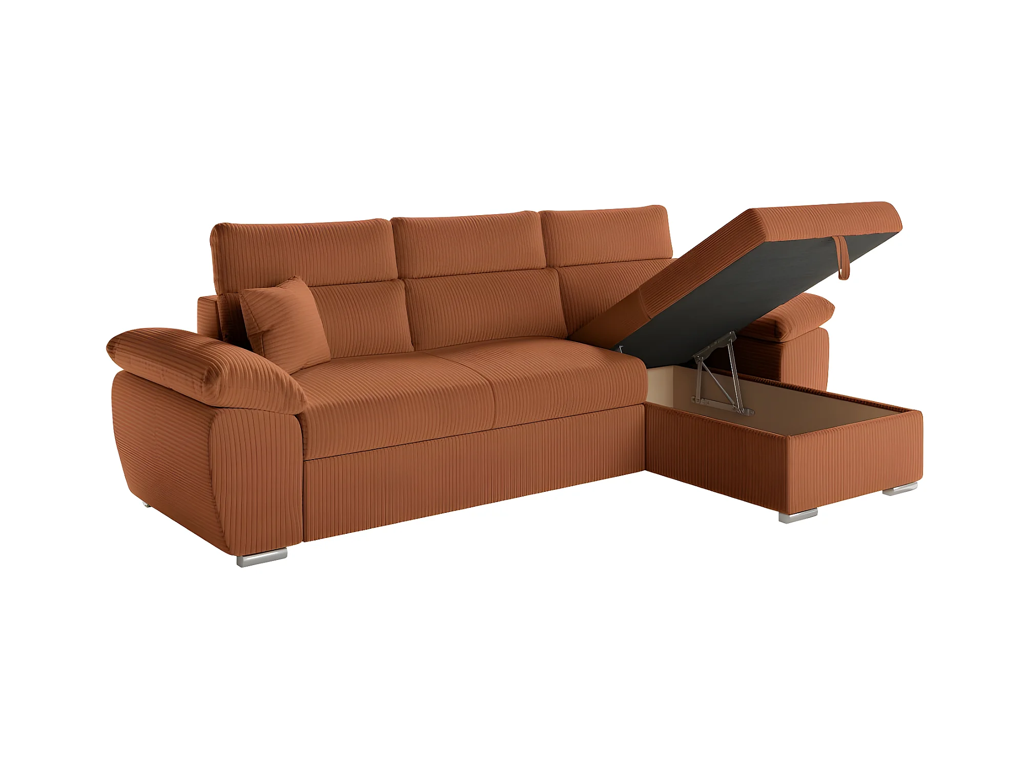 Canapé d'angle 4 places Komeco reversible convertible avec coffre en velours côtelé - Terracotta - L265 x P166 x H91cm - Loungitude