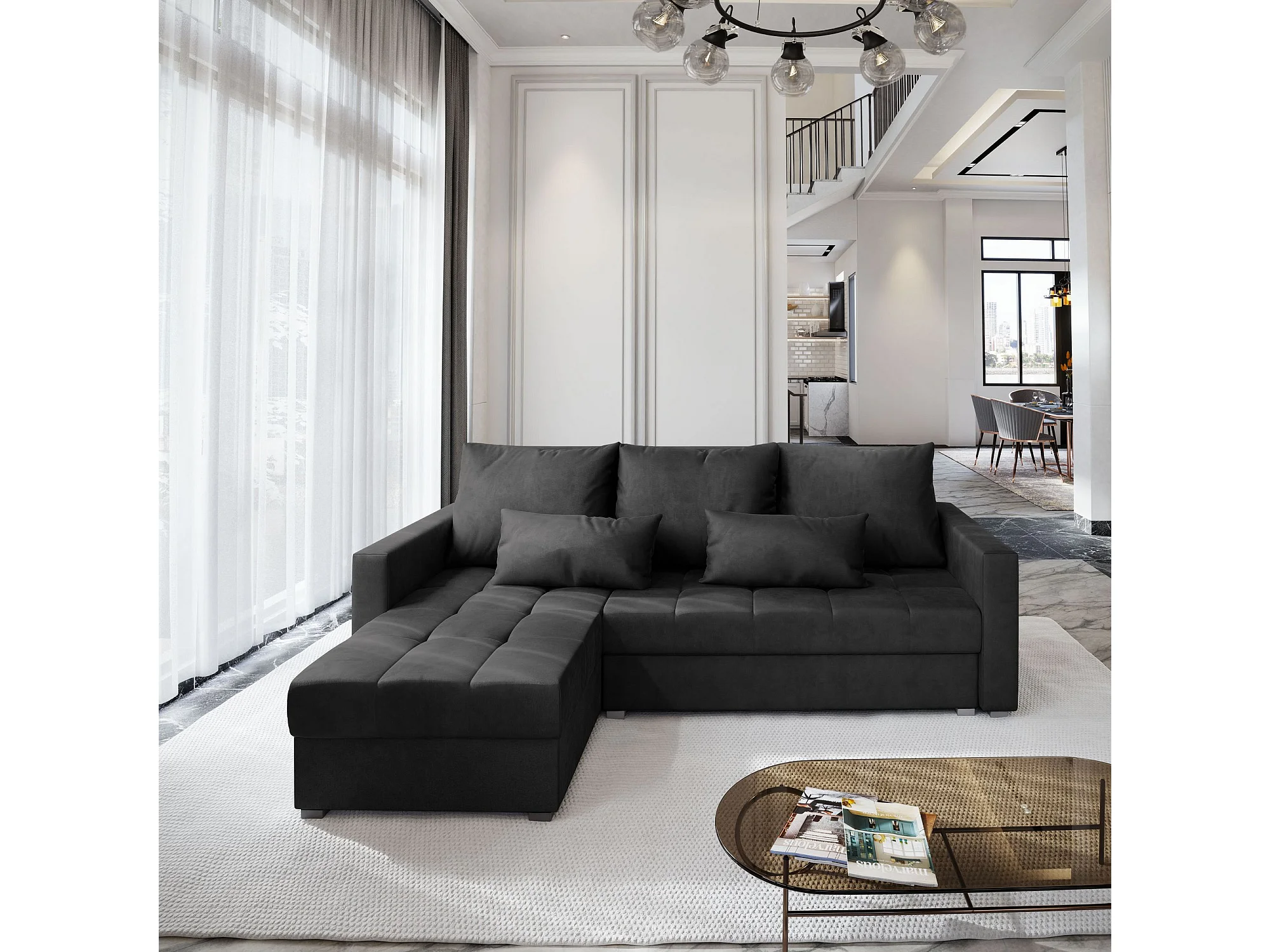 Canapé d'angle KOS Noir en velours avec fonction de couchage