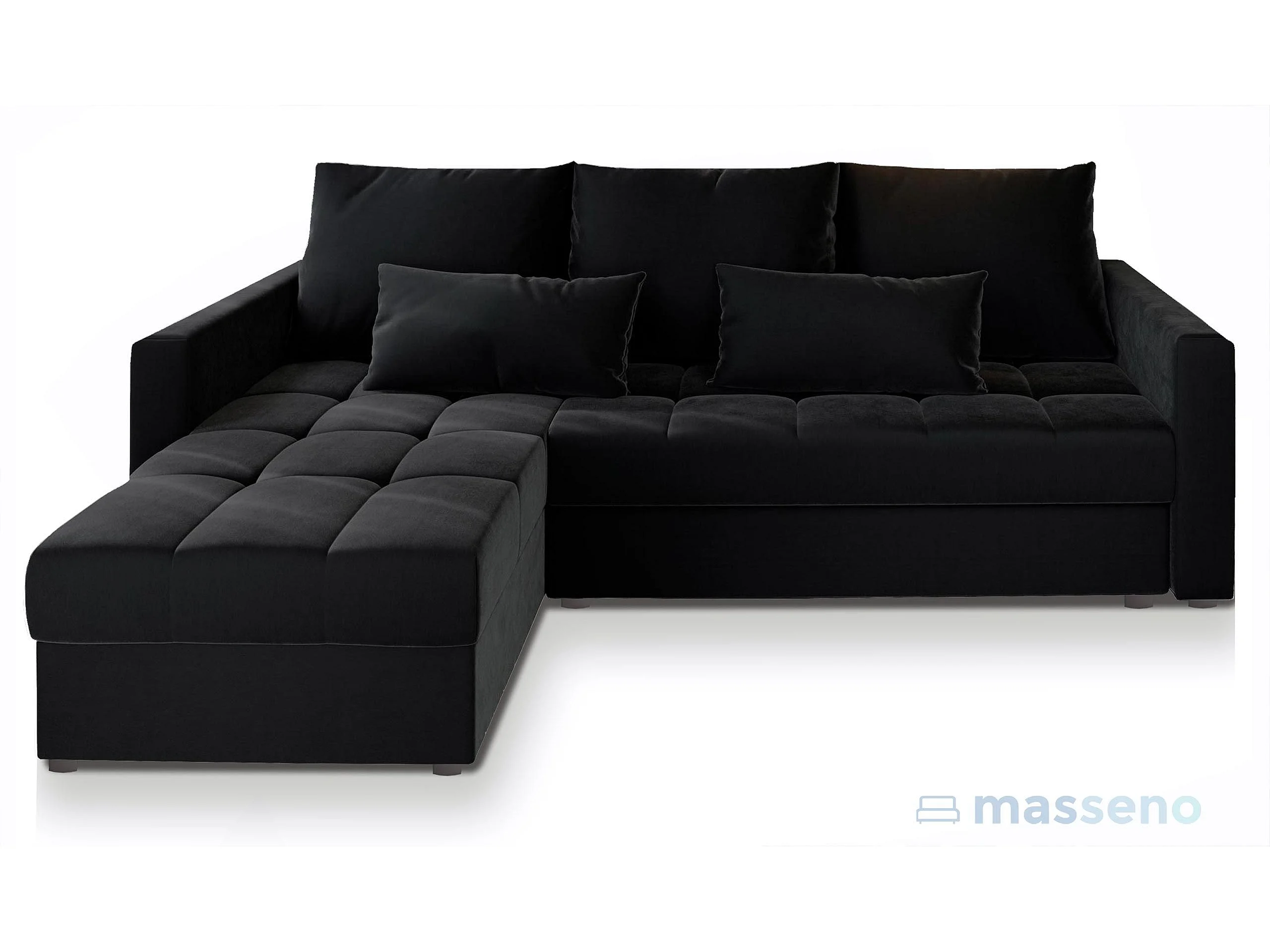 Canapé d'angle KOS PIK Noir en peluche avec fonction de couchage