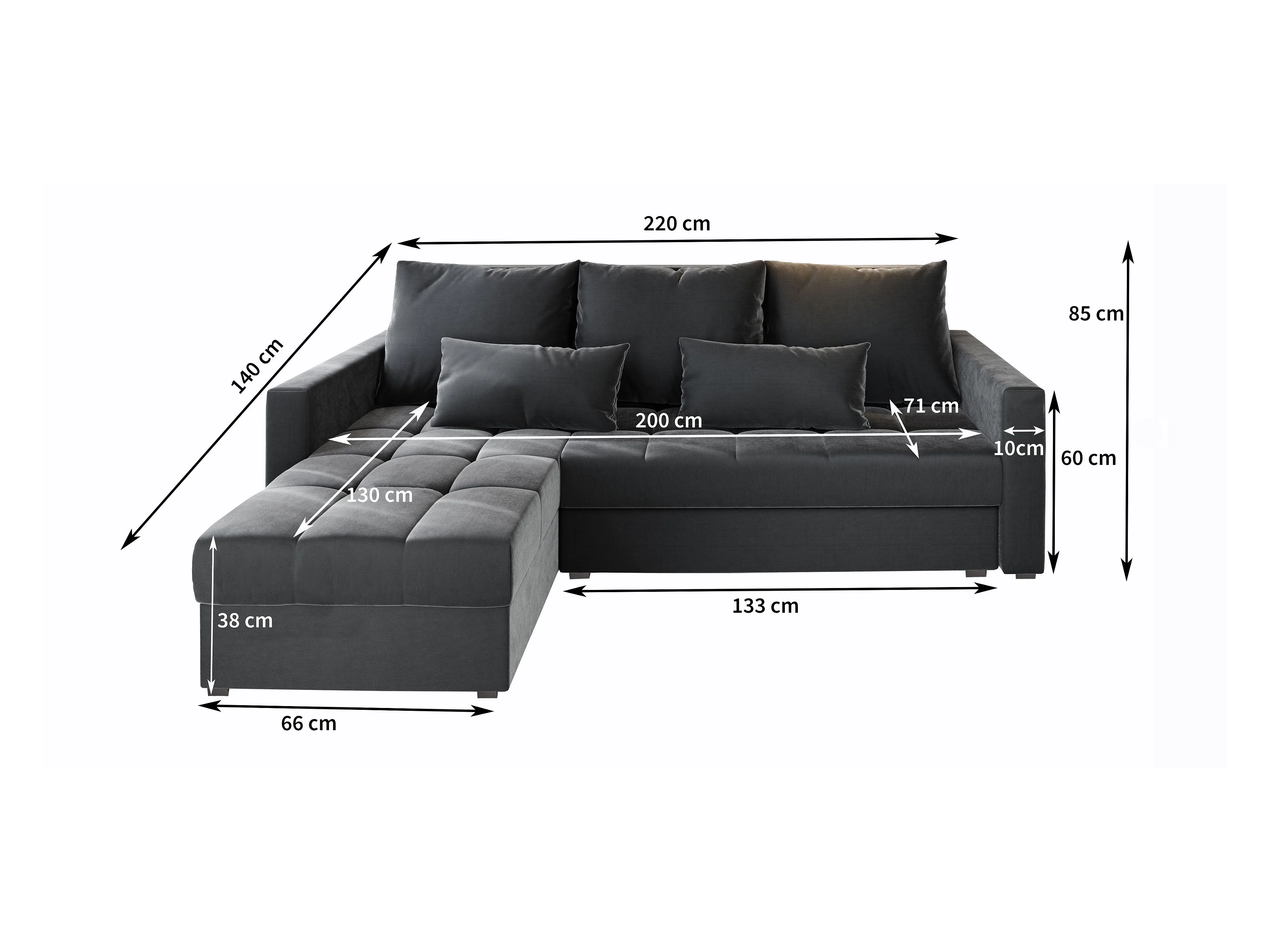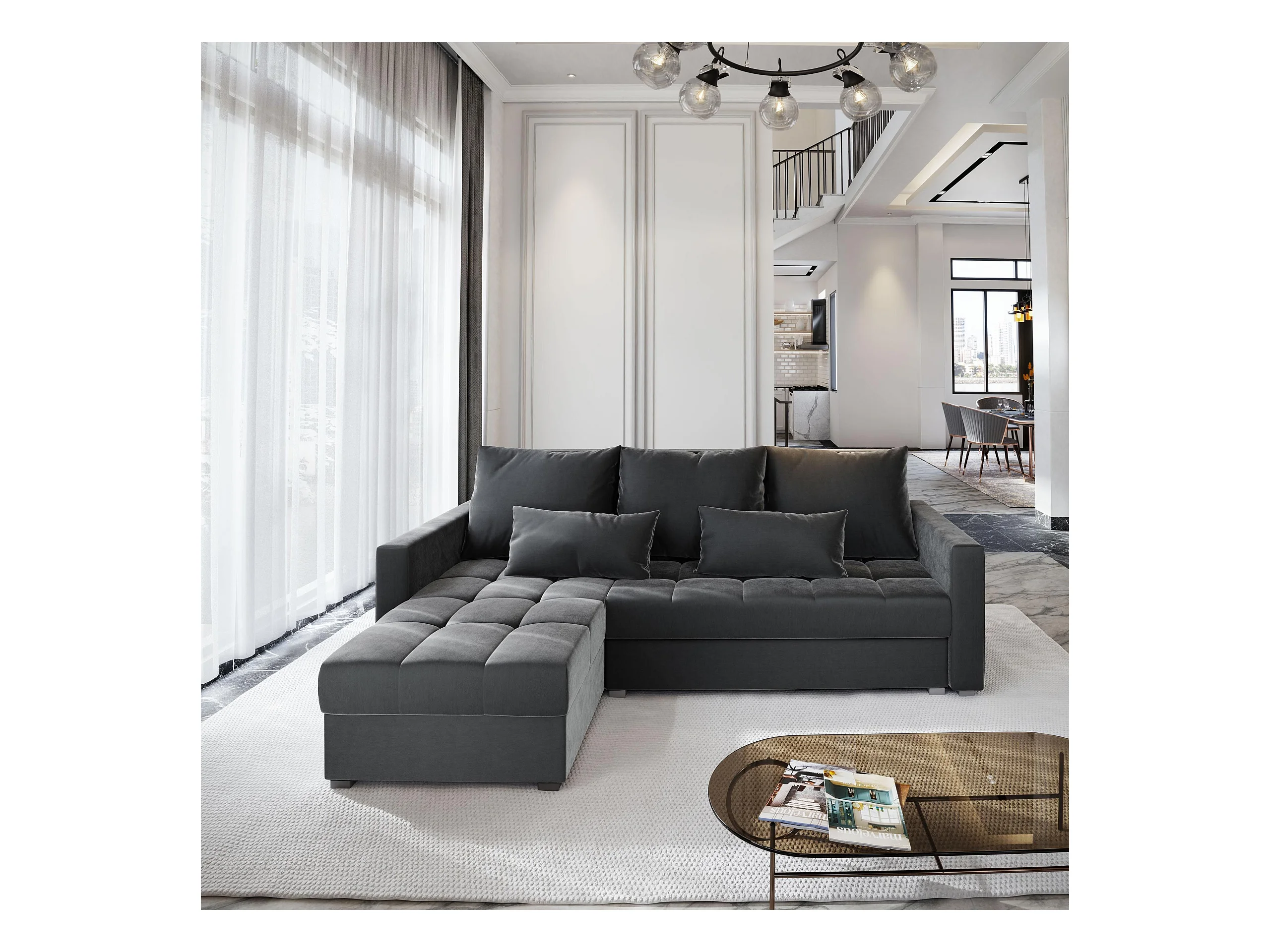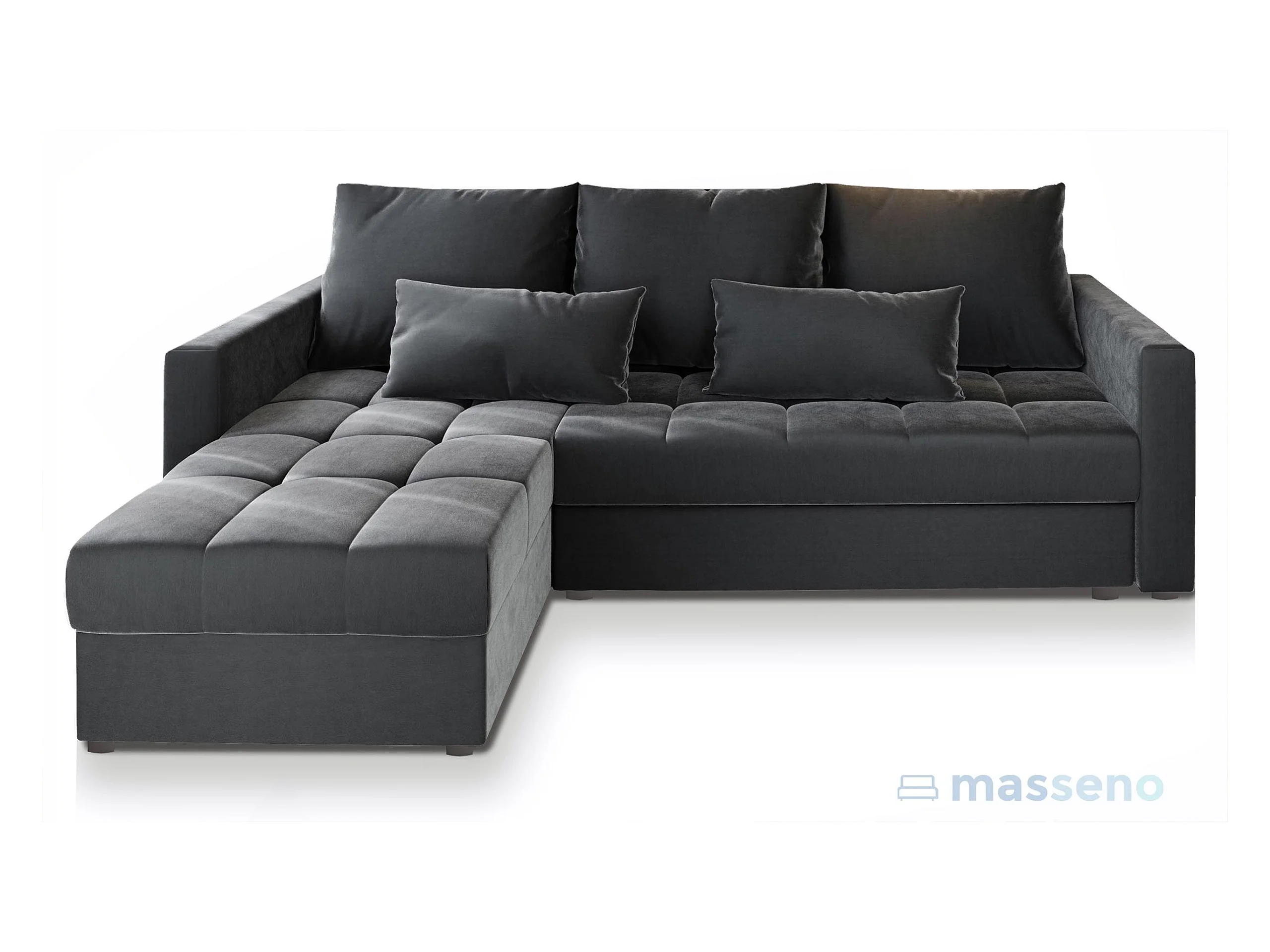 Canapé d'angle KOS PIK Gris en peluche avec fonction de couchage