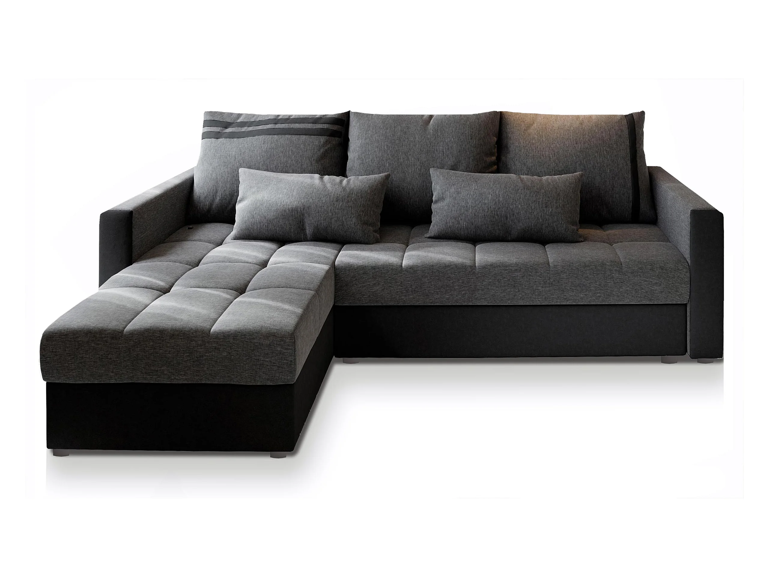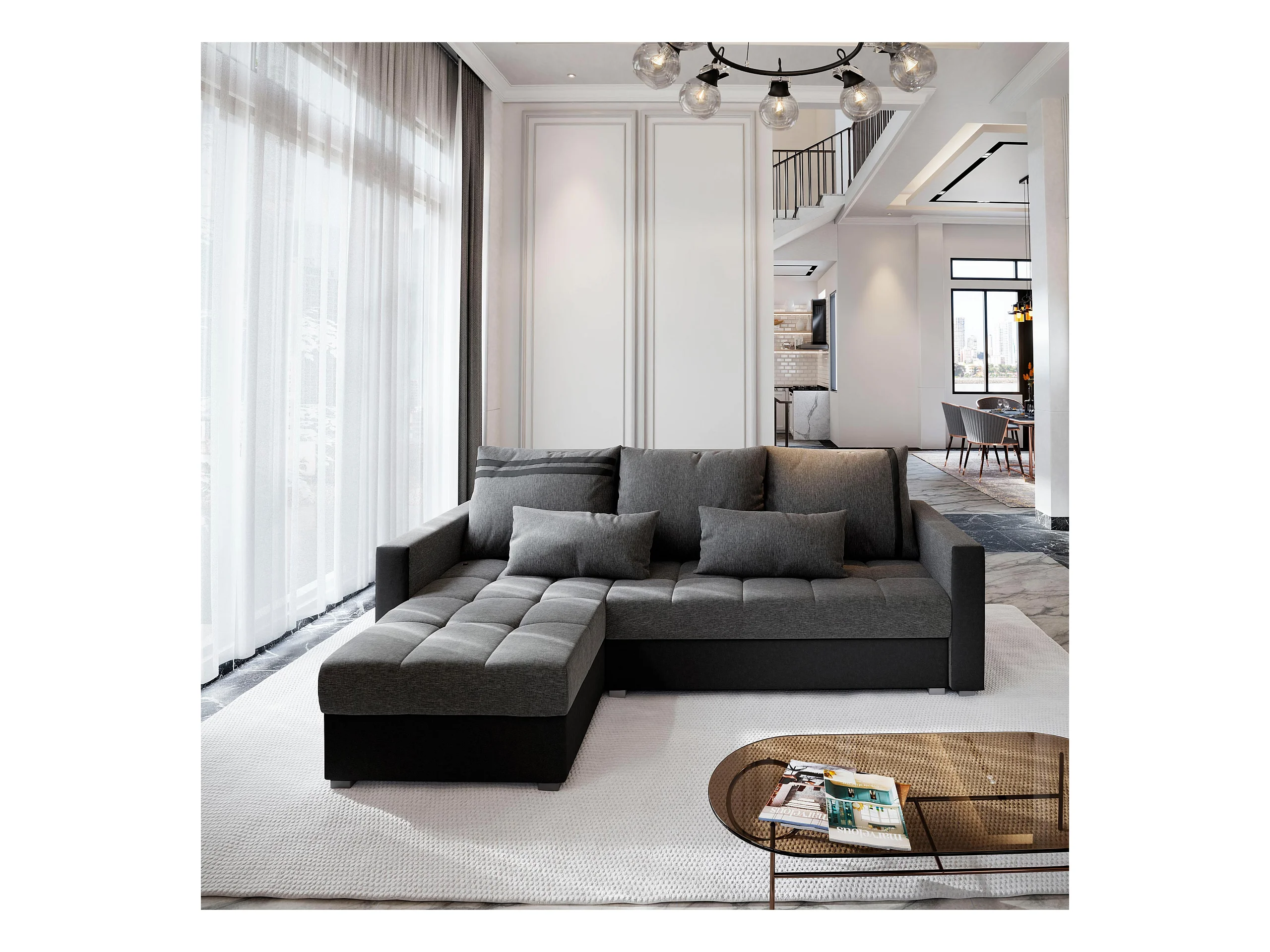 Canapé d'angle KOS PIK Gris clair en tissu texturé avec fonction de couchage