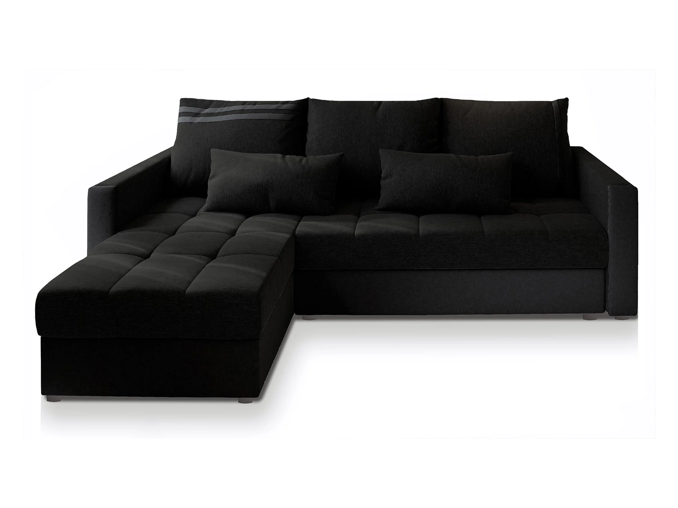 Canapé d'angle KOS PIK Noir en tissu texturé avec fonction de couchage